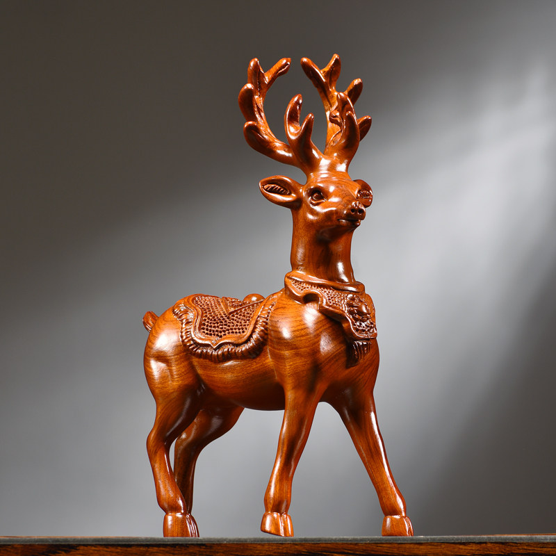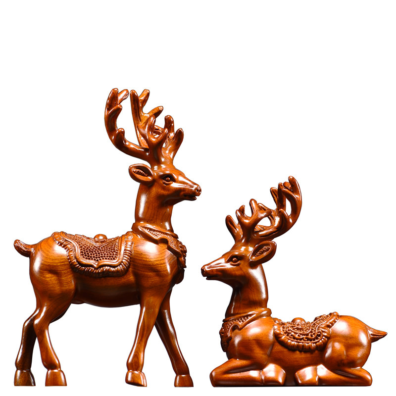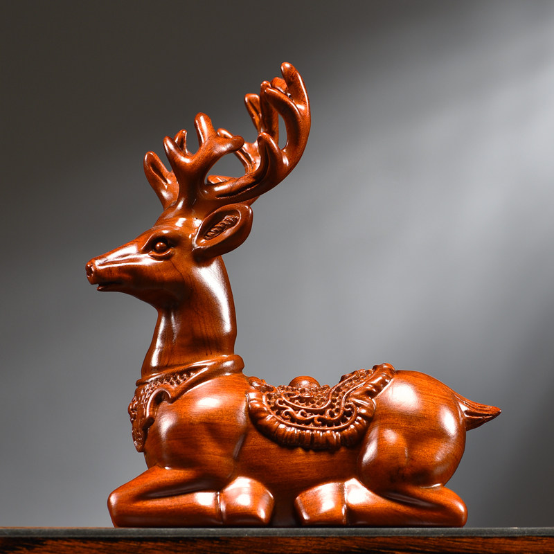 花梨木雕梅花鹿摆件家居客厅实木一对家居办公摆设酒柜装饰工艺品