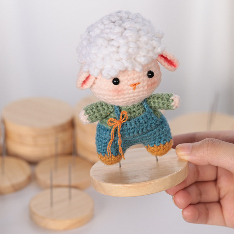 包邮辅料|玩偶娃娃圆形固定底座站立支架钩针木头片针线车载手工