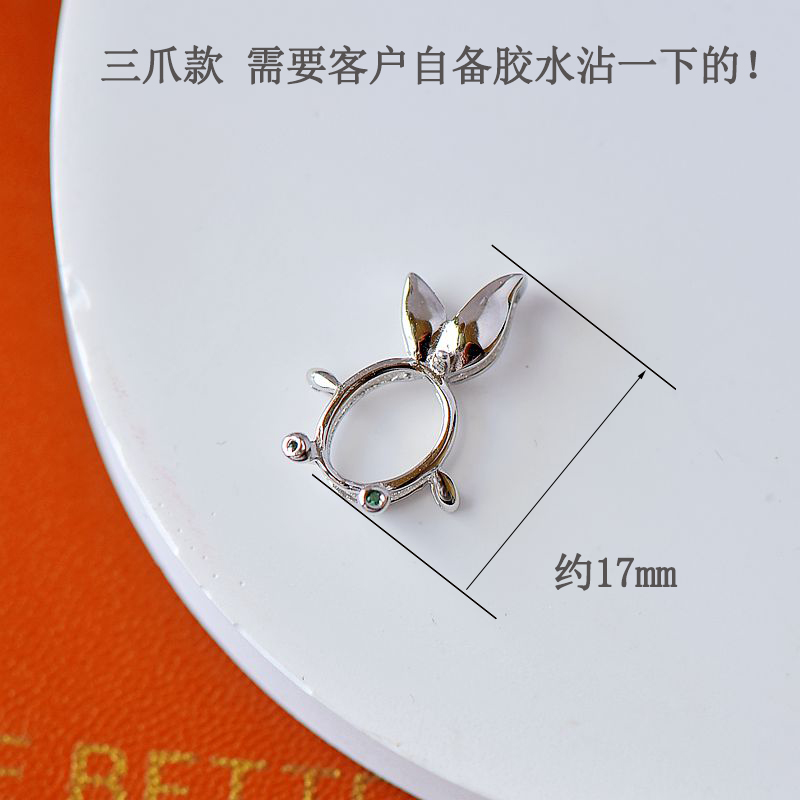 S925纯银吊坠空托时尚女款金鱼三爪DIY蜜蜡松石琥珀玉石镶嵌托7*9
