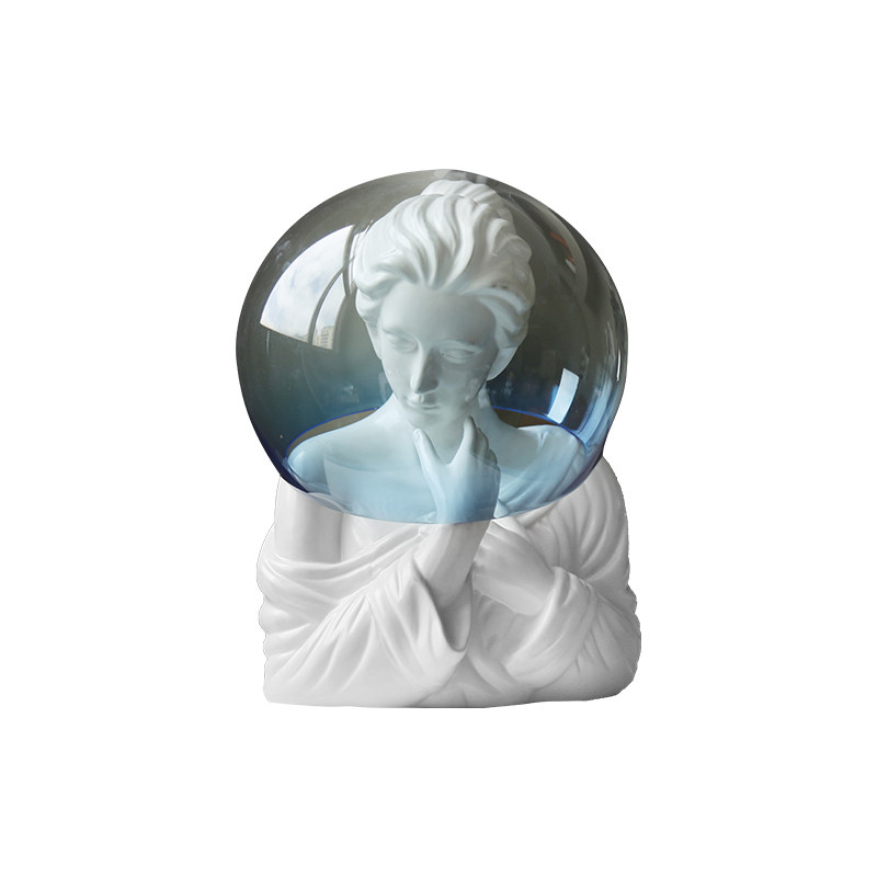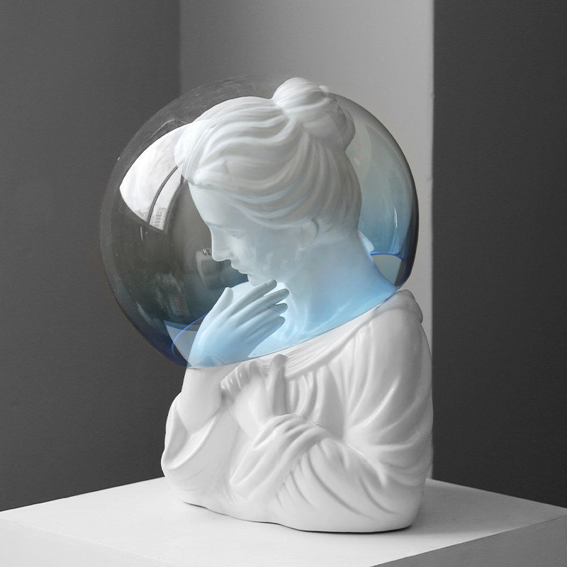蓝色泡泡女孩客厅桌面人物摆件白色树脂艺术雕塑高级感软装饰品大
