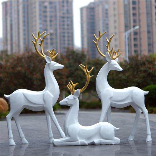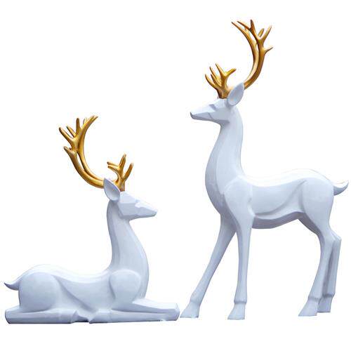 简约现代白色梅花鹿玻璃钢雕塑户外公园林景观房地产小区装饰摆件