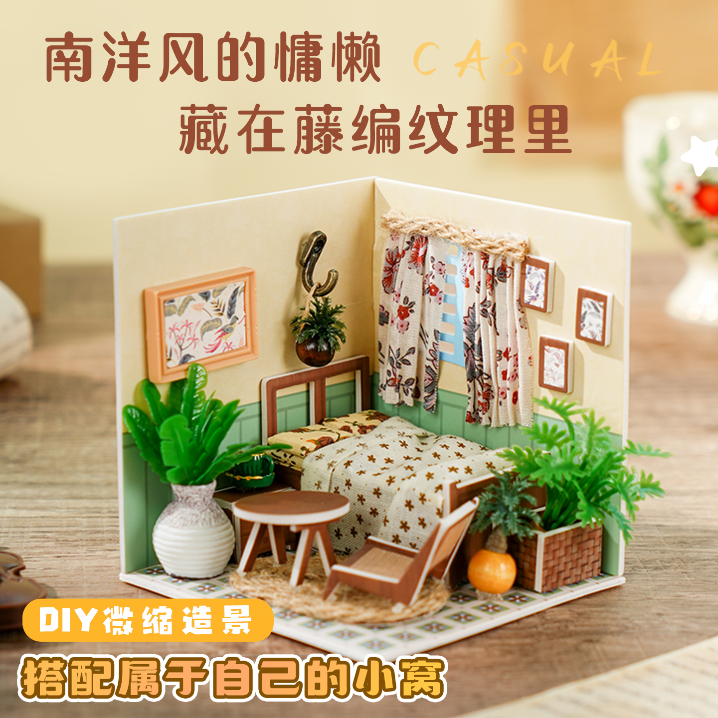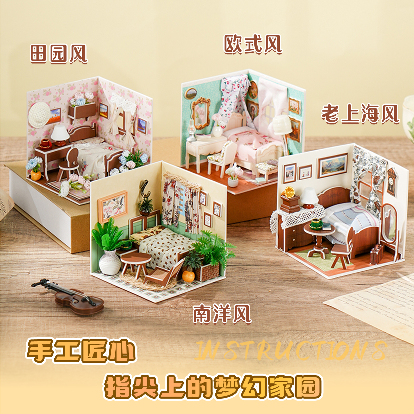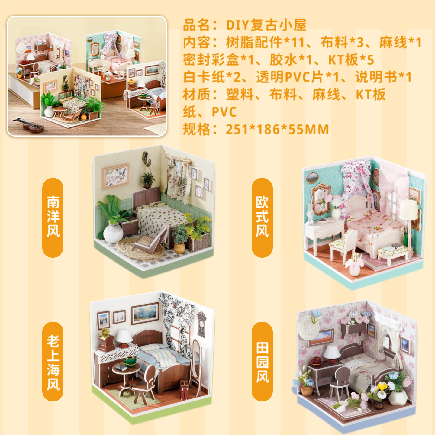 悦木DIY小屋复古小屋木质拼装模型积木迷你学生益智玩具创意礼物