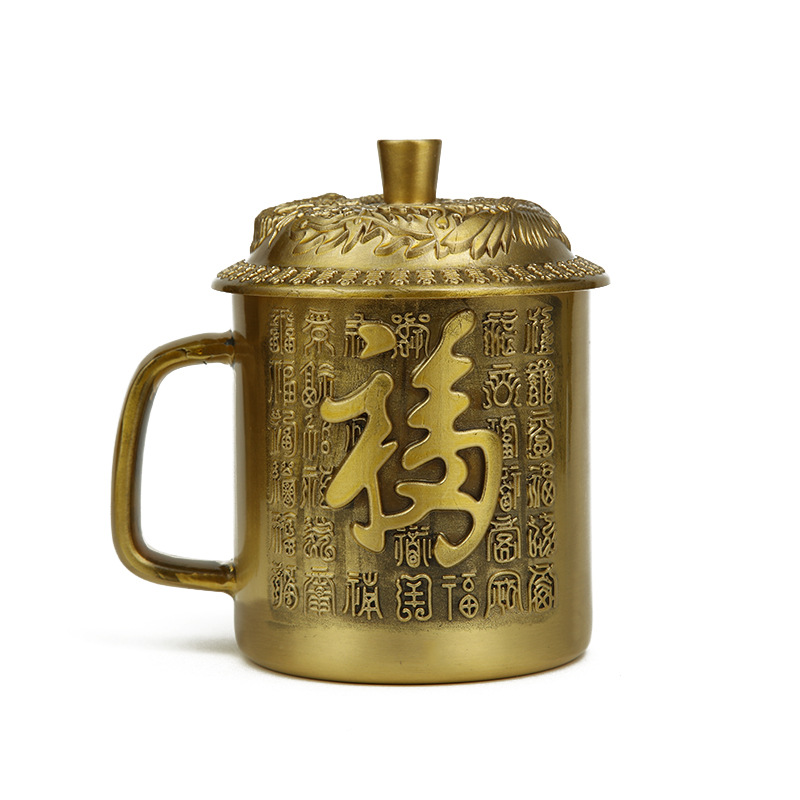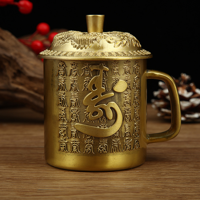 黄铜水杯茶杯办公家居桌面创意收藏铜器礼品小摆件金属工艺品