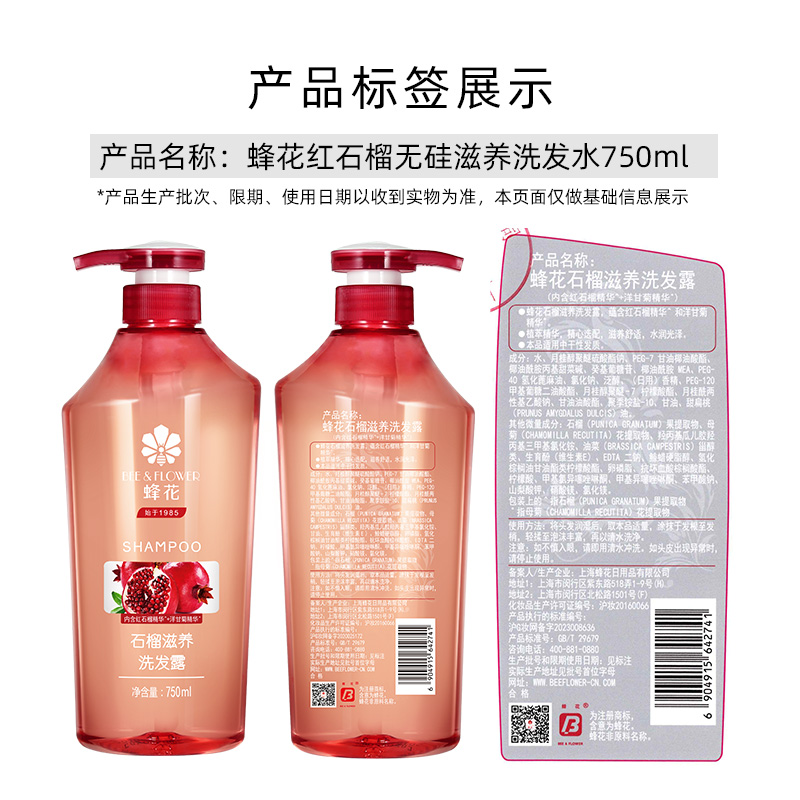 蜂花洗发水无硅油洗发膏石榴精华去油蓬松滋养保湿强韧发丝男女适