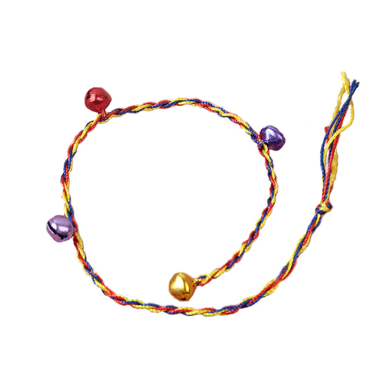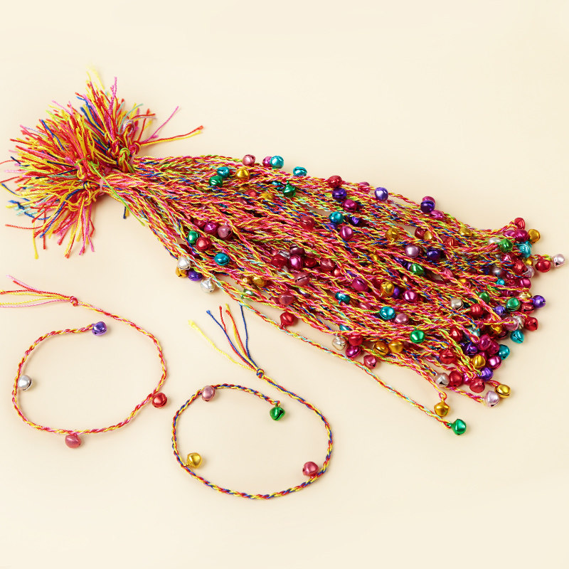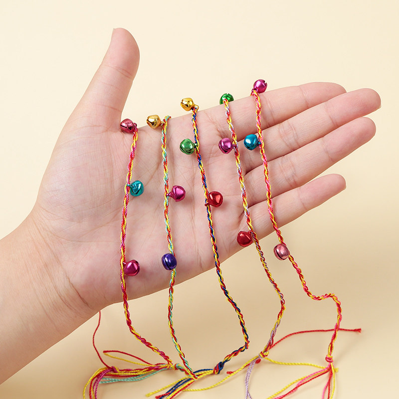 端午节五彩绳铃铛手绳六一儿童幼儿园节日礼物手工diy红绳批发