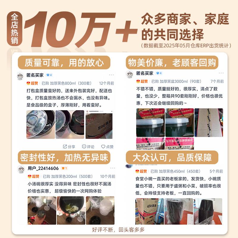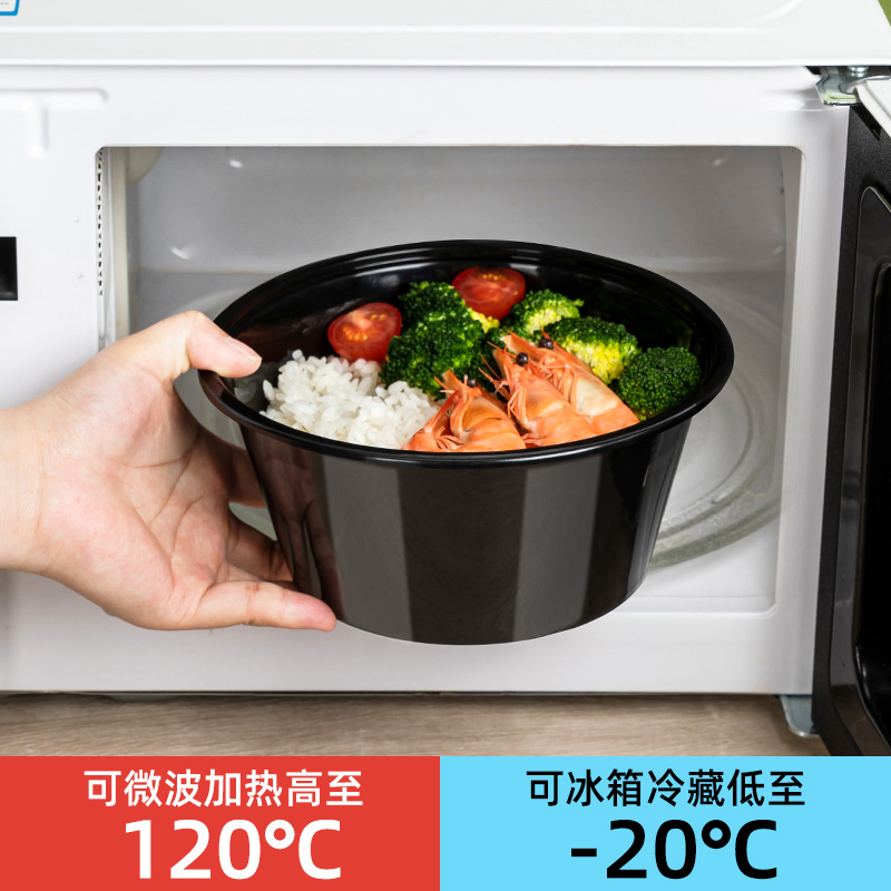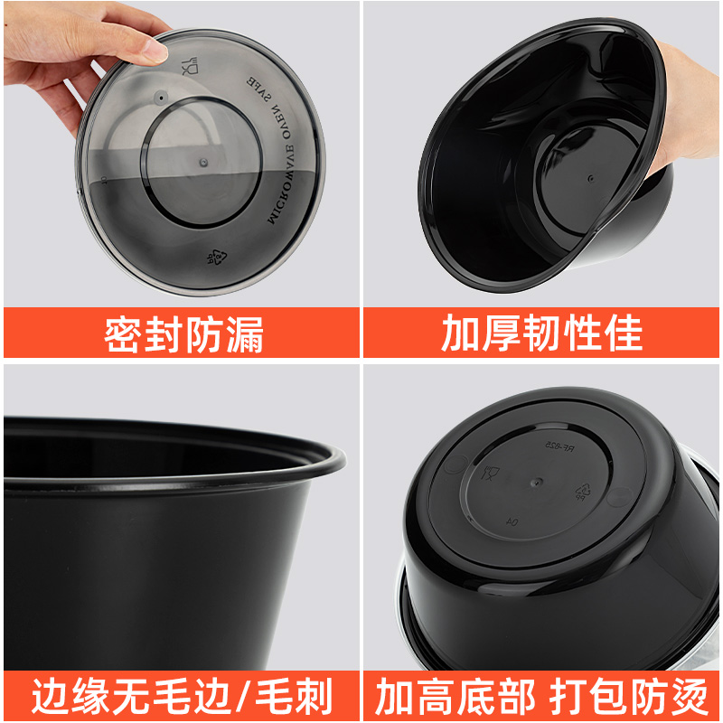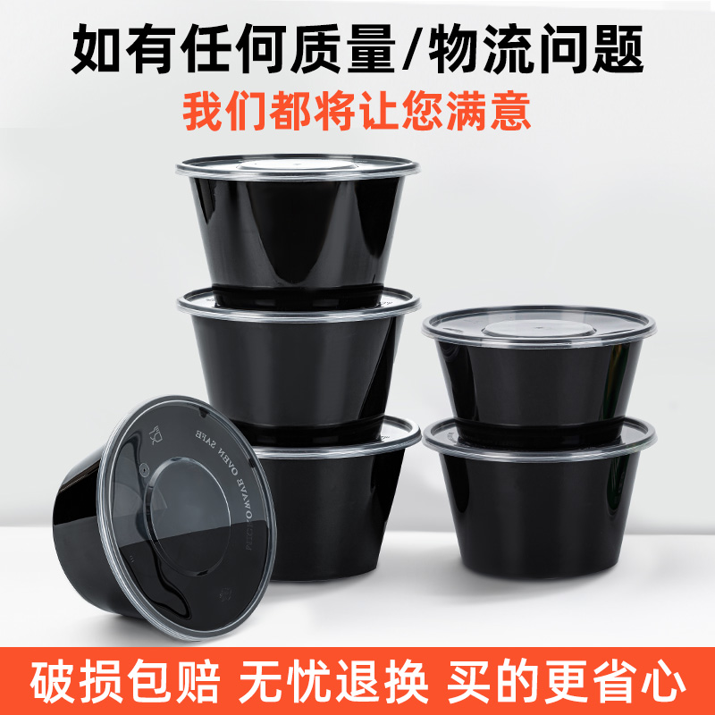 迅胜圆形1000ml一次性餐盒黑色外卖打包盒快餐便当饭盒加厚汤碗