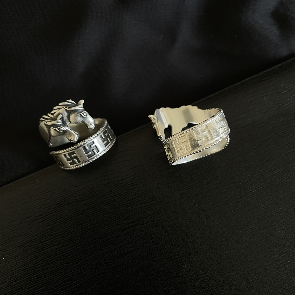 925纯银蒙古马头戒指艾斯银饰原创蒙古银戒男士纯银戒指蒙古元素
