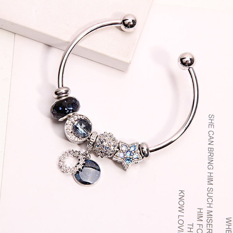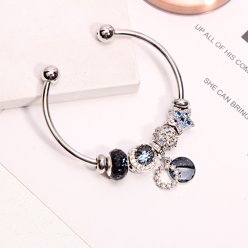 潘家风格时尚轻奢蓝色星月转运珠手链女ins小众设计开口手镯闺蜜