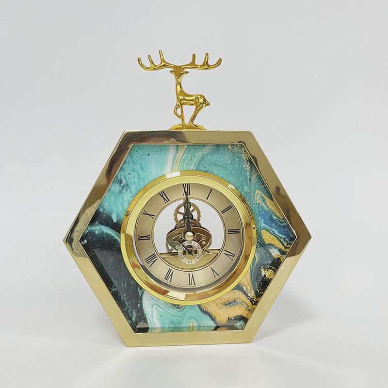 欧式客厅时钟摆件不锈钢轻奢创意摆设卧室静音简约现代高档座钟
