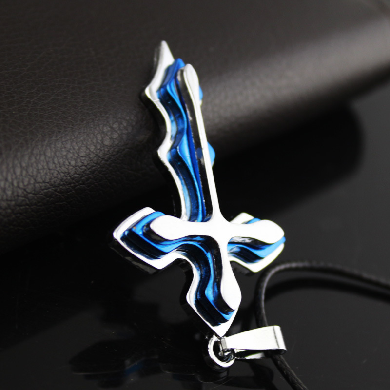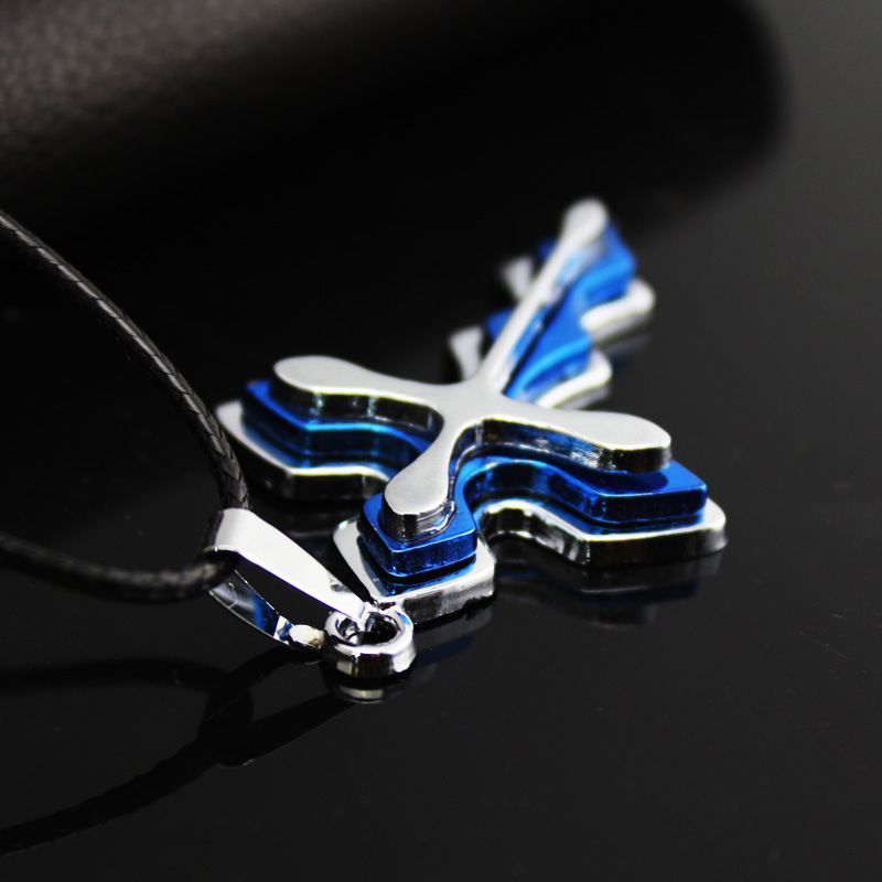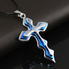 新款推荐 男士十字架项链 蓝色波浪不锈吊坠钢外贸