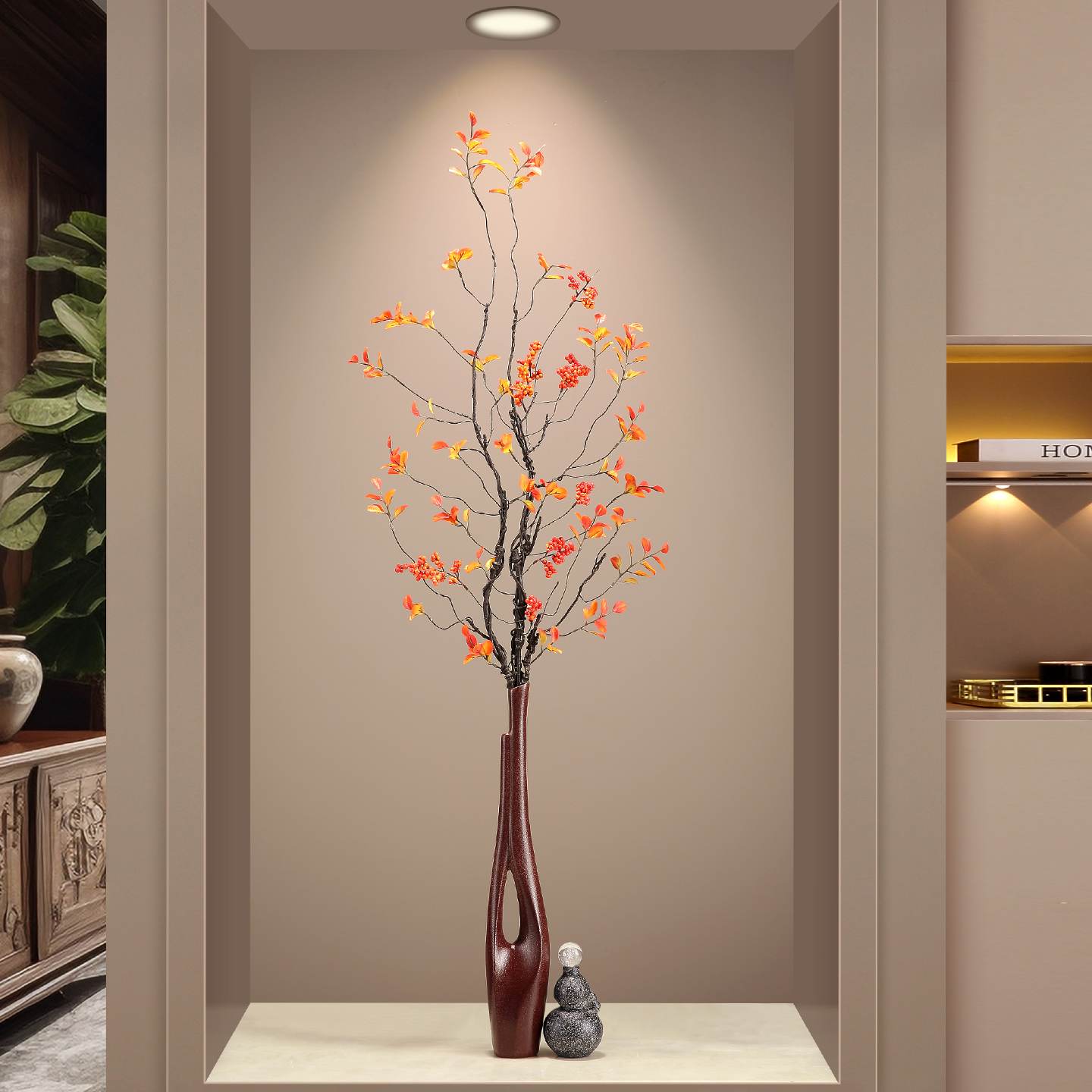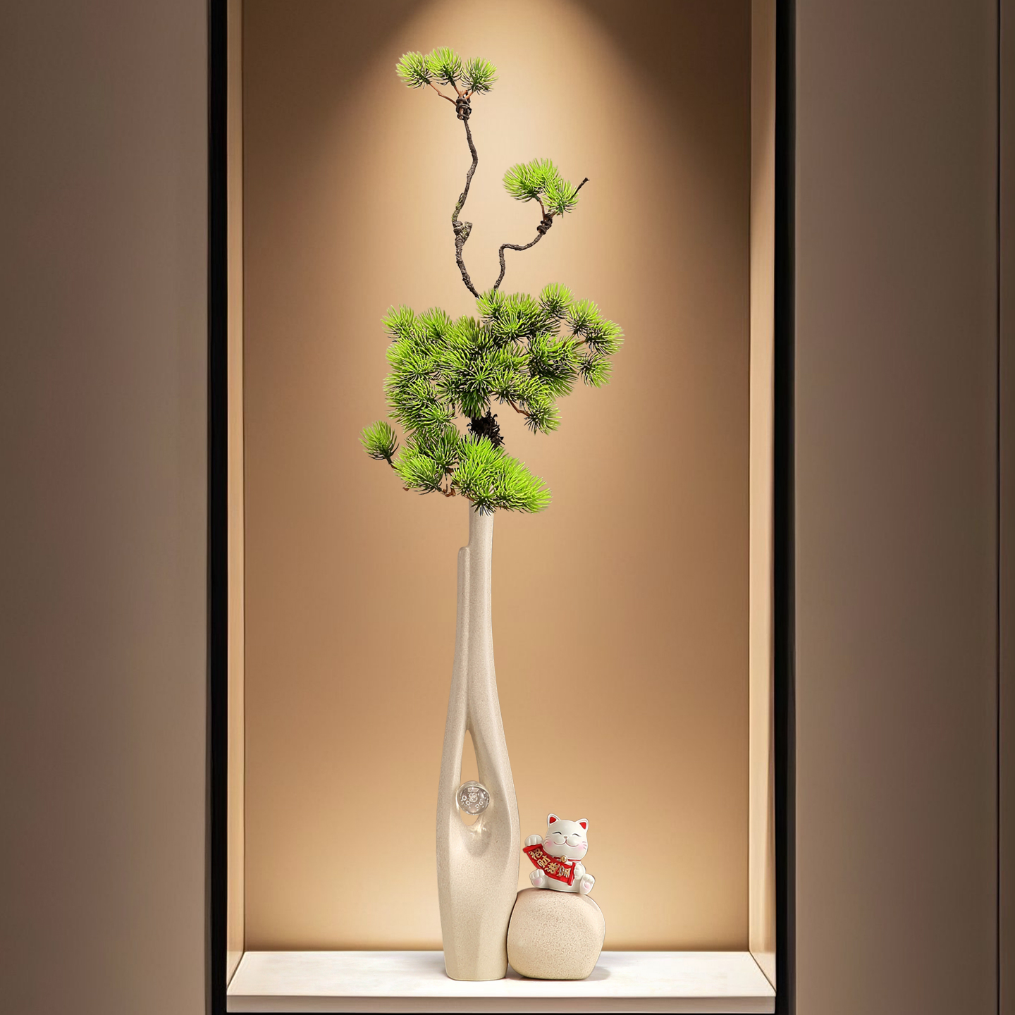入户门玄关摆件客厅壁龛细长竖高花瓶中古风现代高级感装饰艺术品