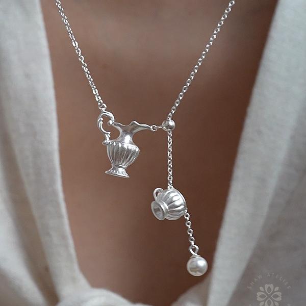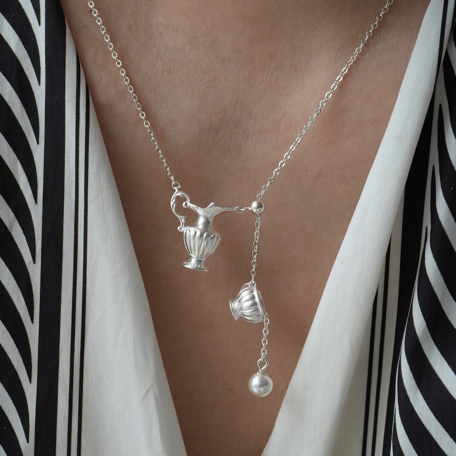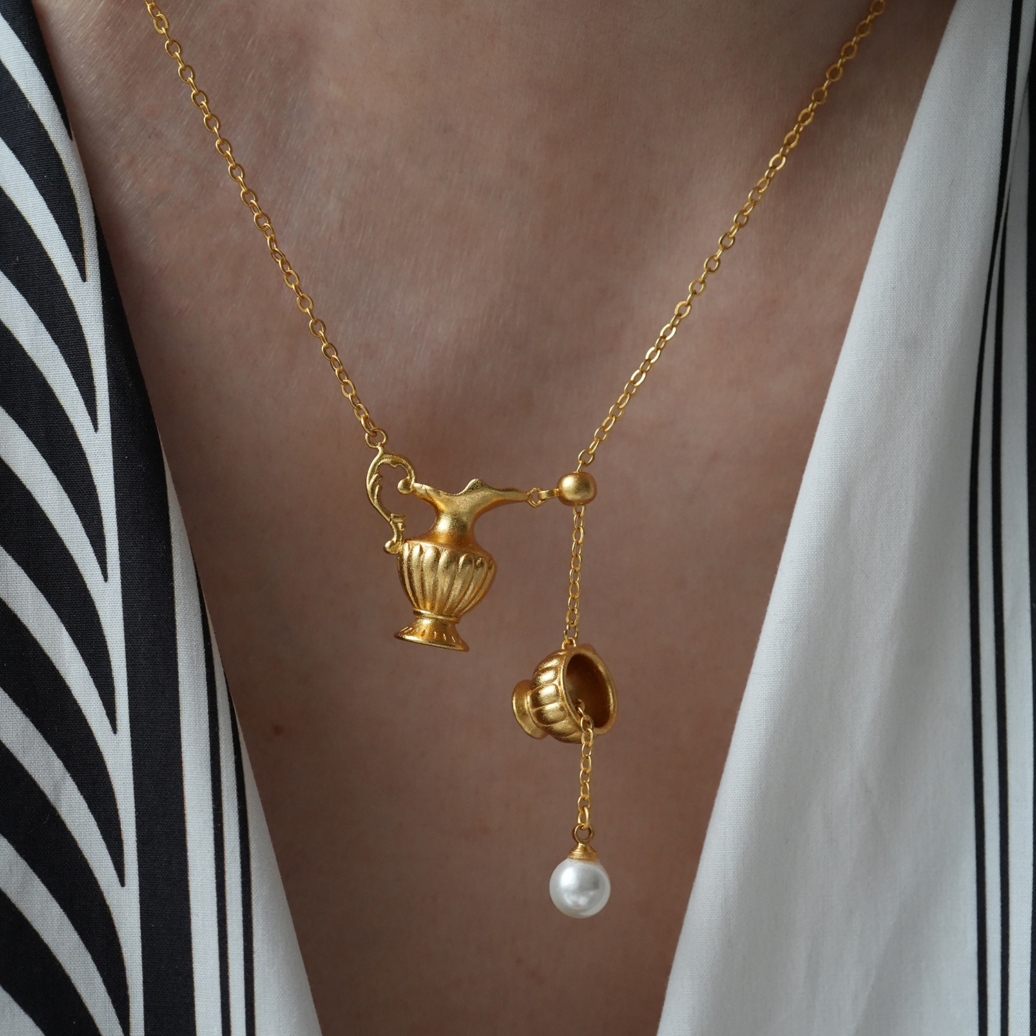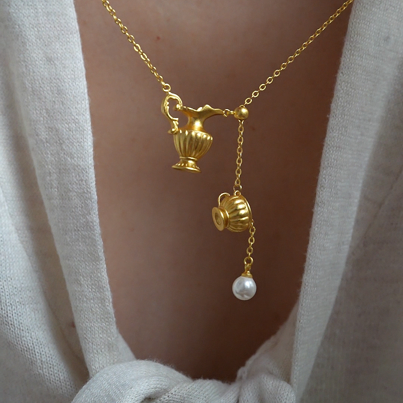 ShawAtelier原创设计法式浪漫复古水壶杯子轻奢锁骨链趣味项链