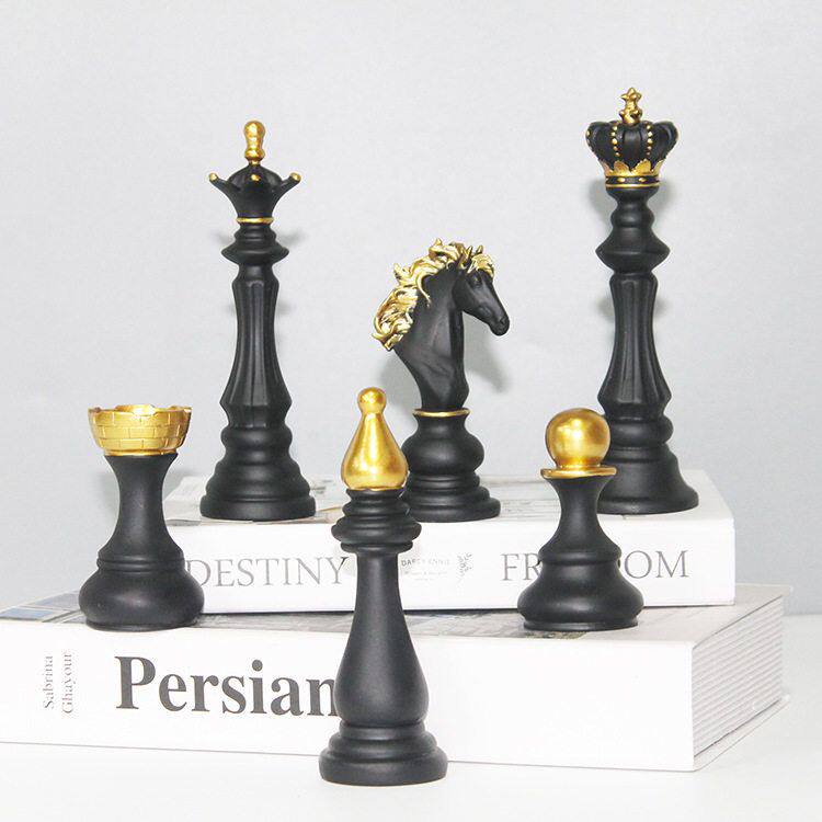 创意家居摆件国际象棋树脂摆件橱窗家居装饰品黑色白色棋子摆设