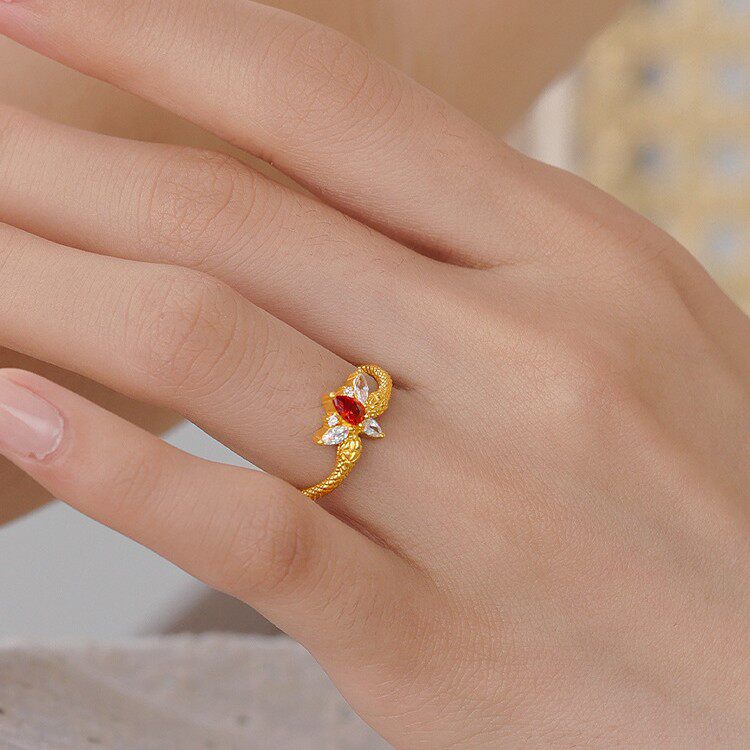 创意轻奢加冕夜冠灵蛇开口戒指少女生肖蛇转运设计小众高级感礼物
