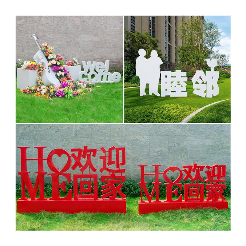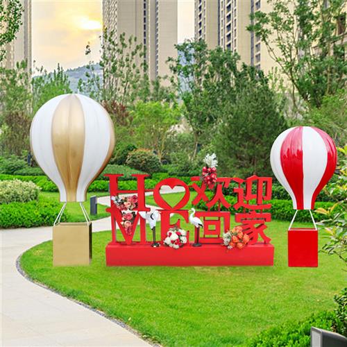 欢迎回家玻璃钢睦邻雕塑小区售楼部道具热气球礼盒模型装饰摆件