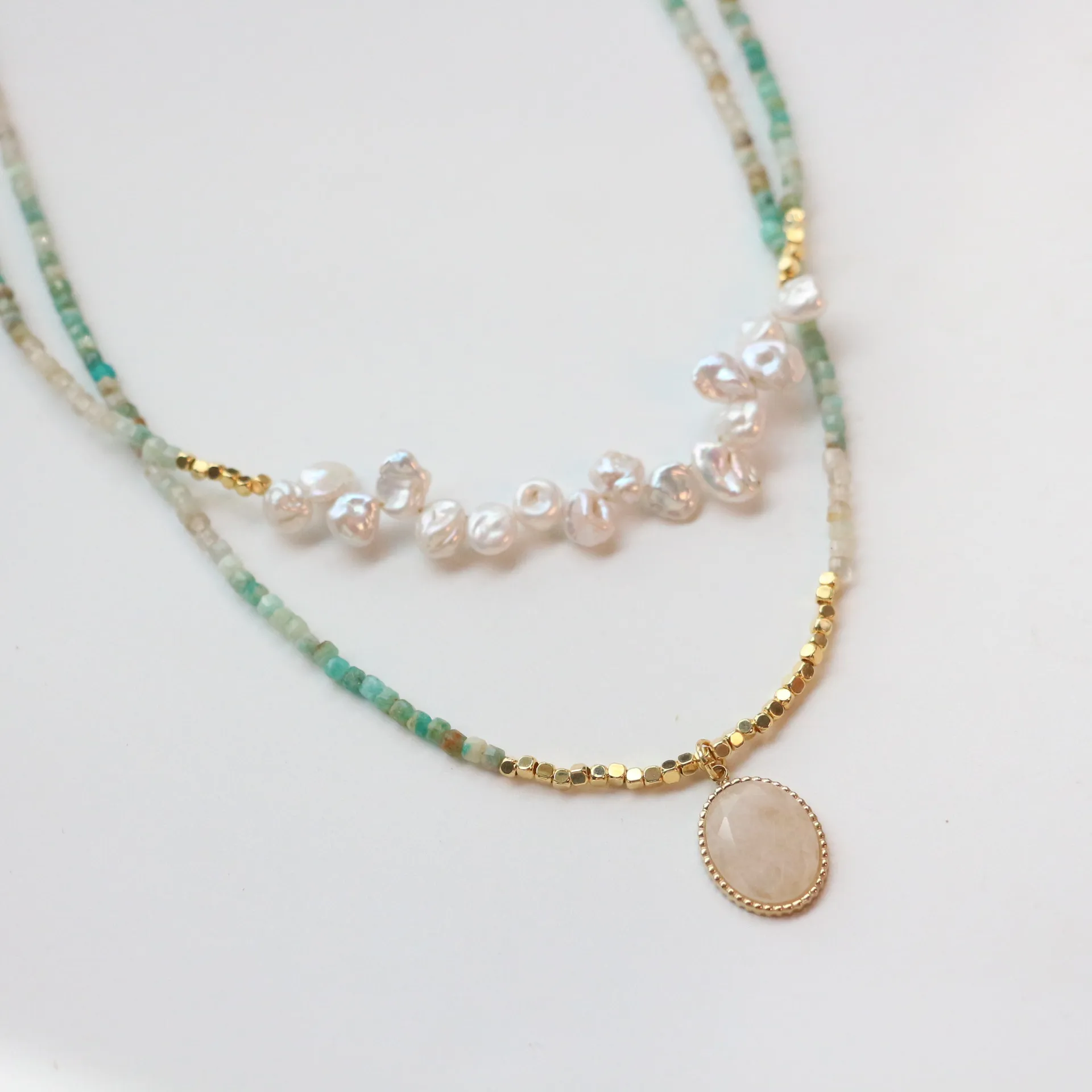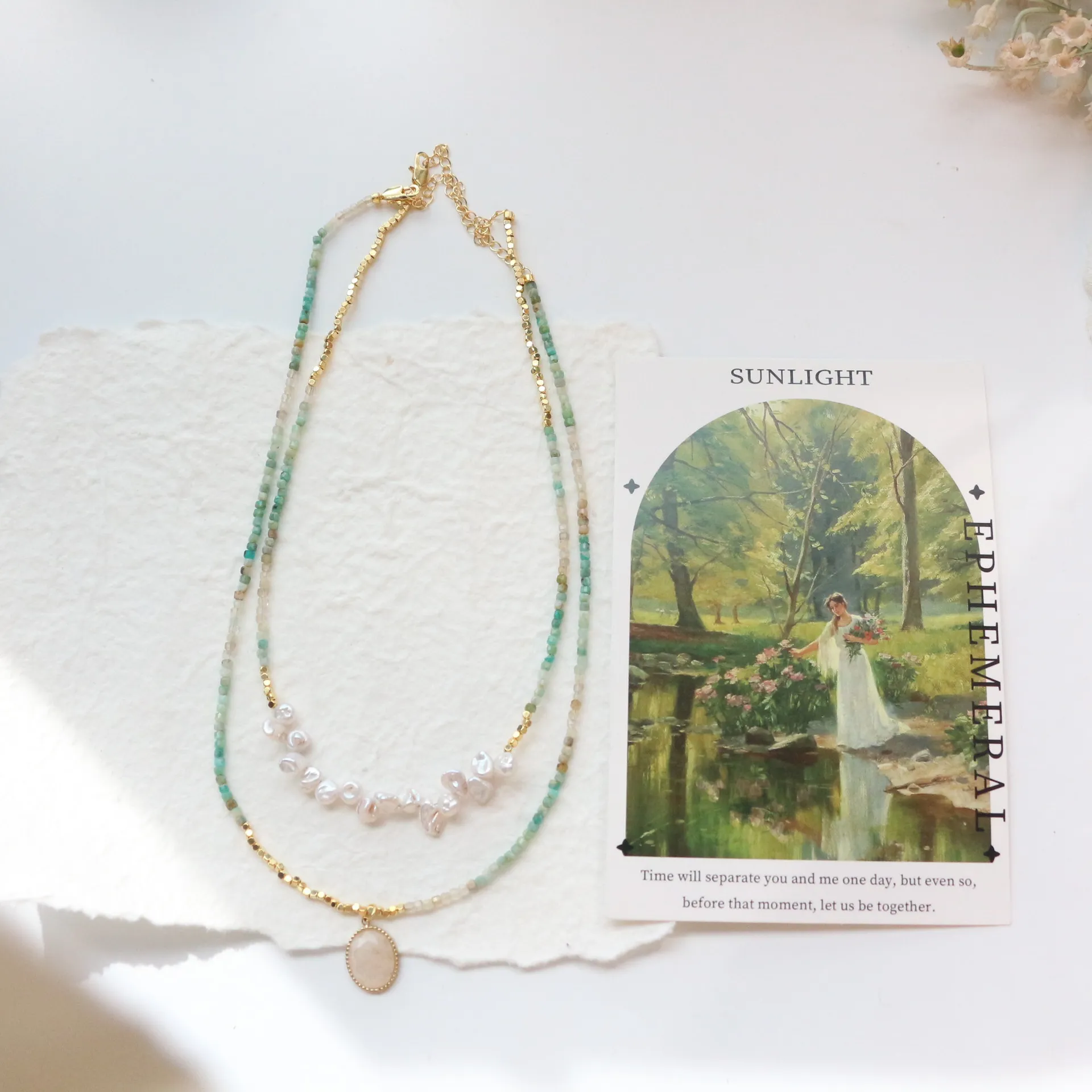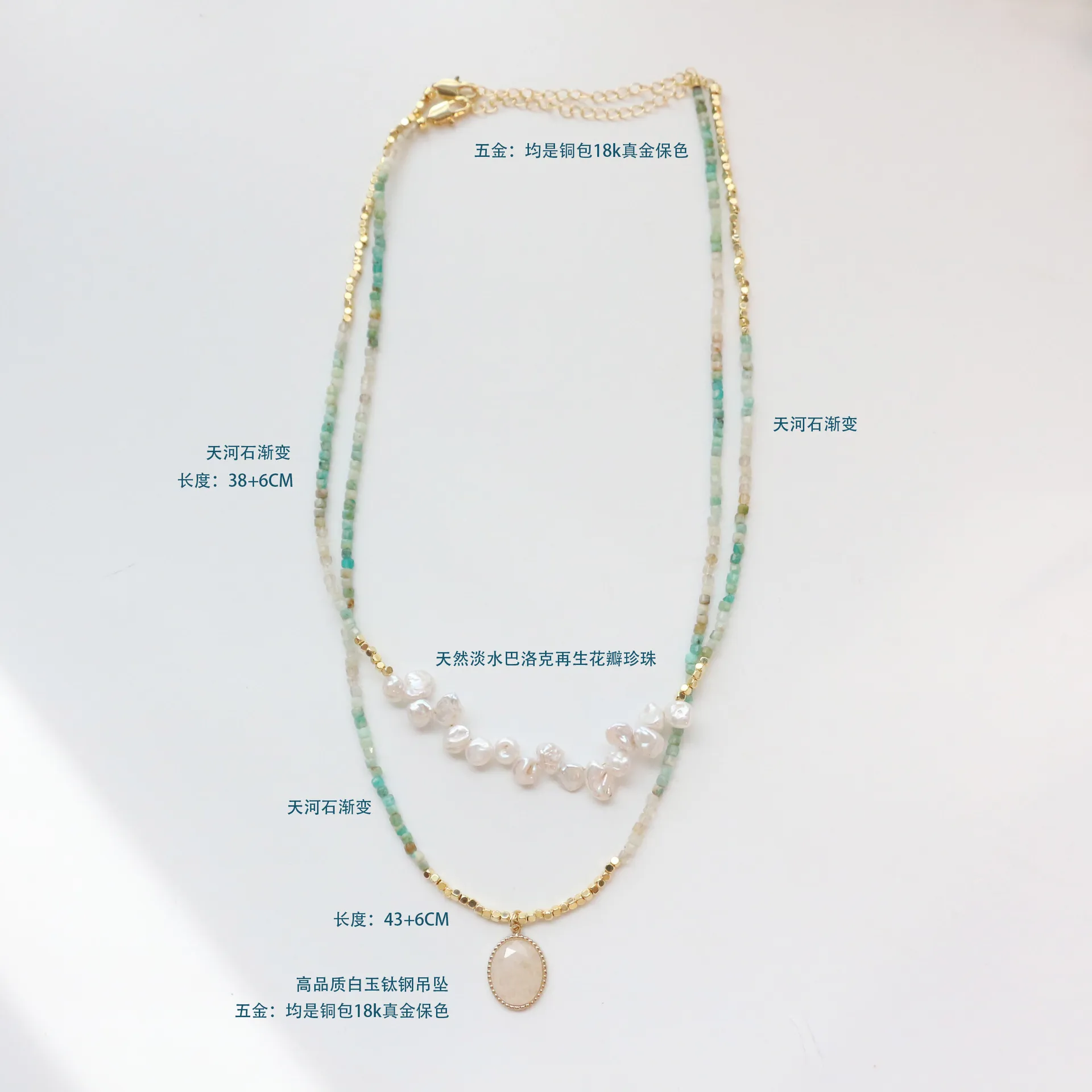 水墨色彩天然天河石渐变工艺再生花瓣珠创意串珠项链铜包18k金