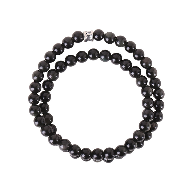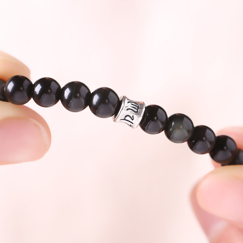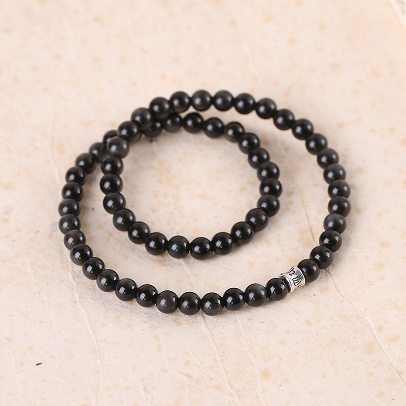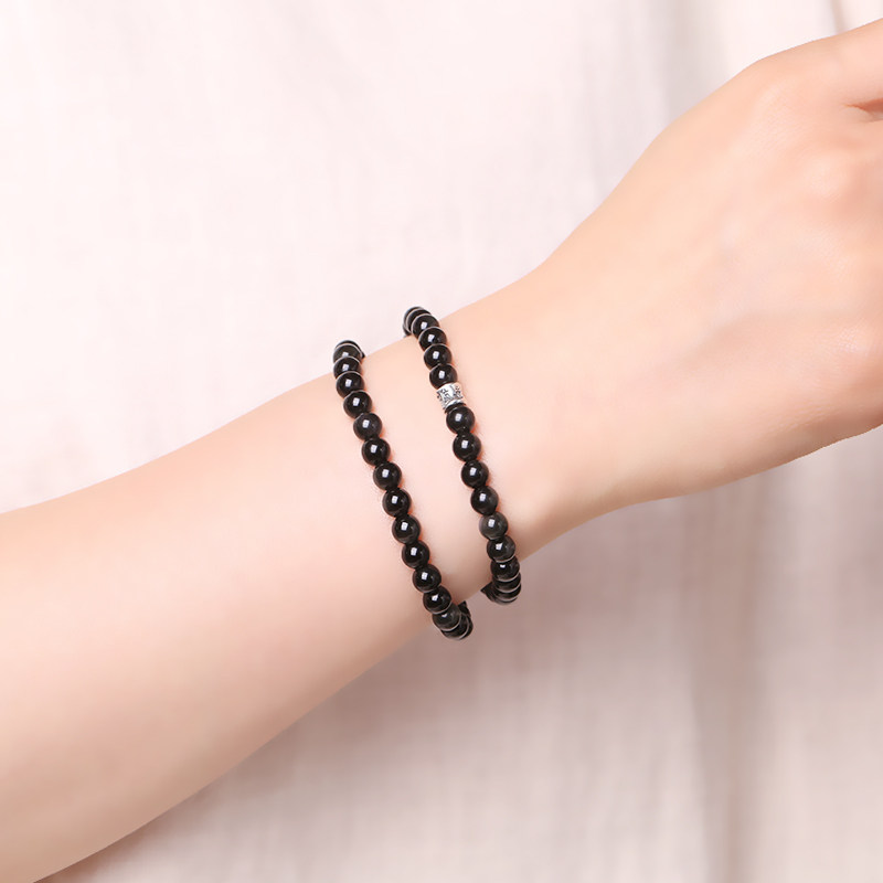 六字真言天然黑曜石手链女款黑色水晶手串两圈多圈叠戴护身招财
