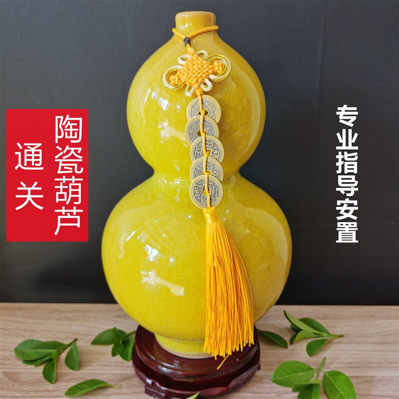 厨房在西北角黄色陶瓷葫芦底款乾字摆件火烧天门乾卦中式简约摆件