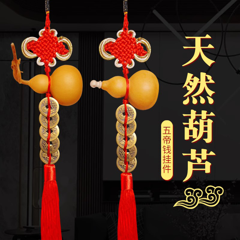 五帝钱门对门天然葫芦挂件白玉真品铜钱与邻居窗户大门厕所中国结