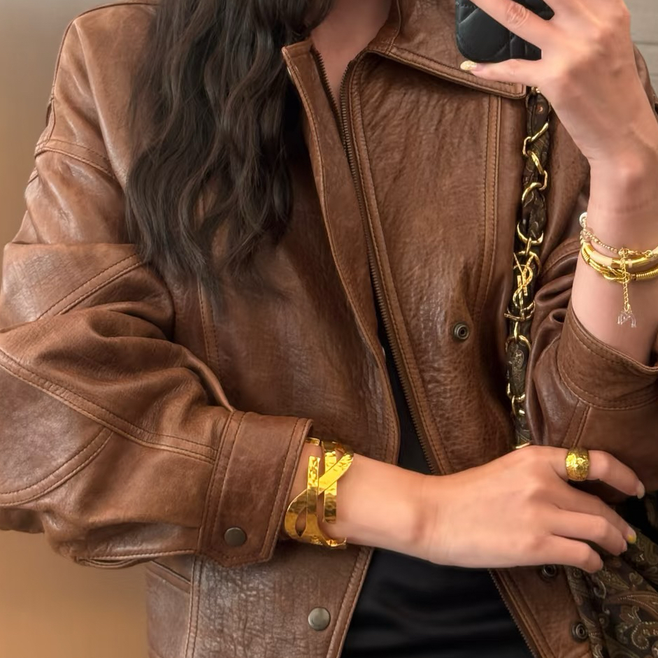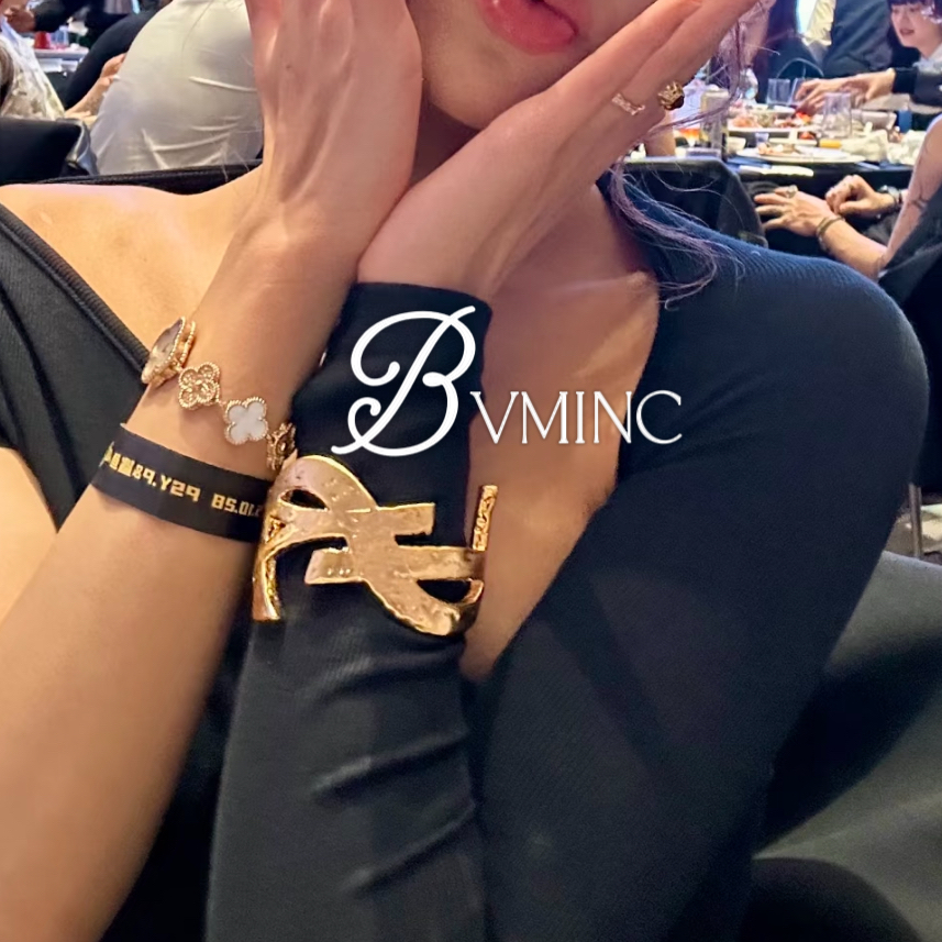 bvminc 杨树林字母不规则纹路金色开口手镯