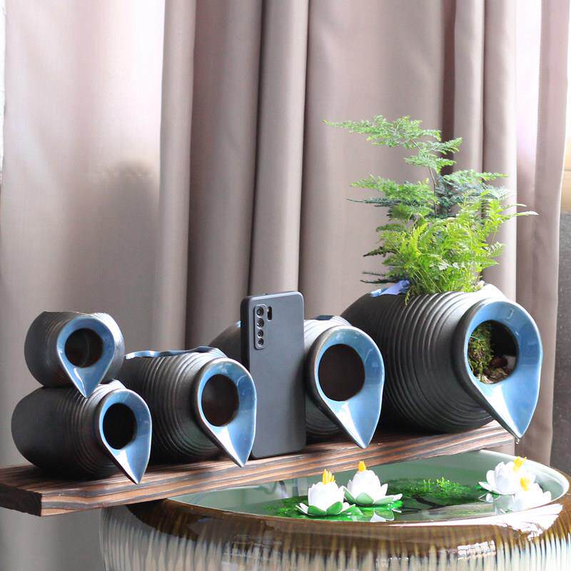 碳化木板生态缸古法养鱼天然实木流水罐摆件配件庭院花园造景diy