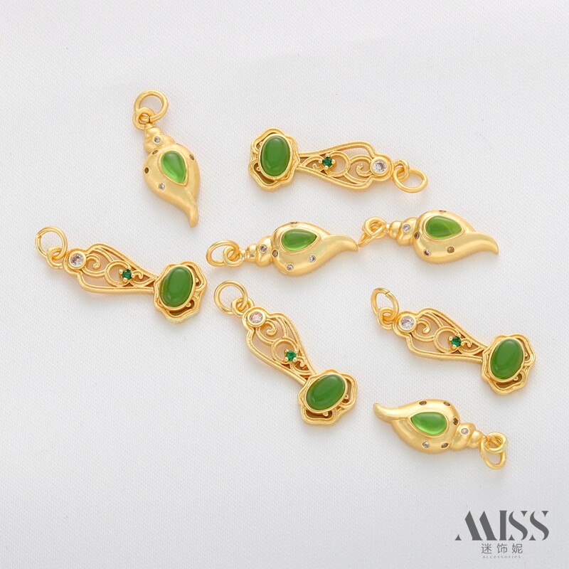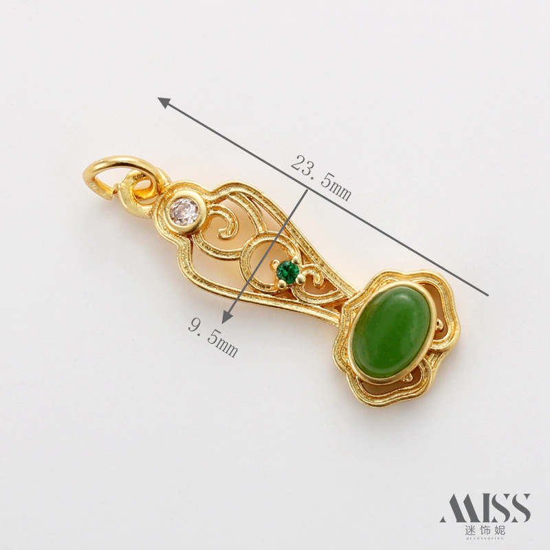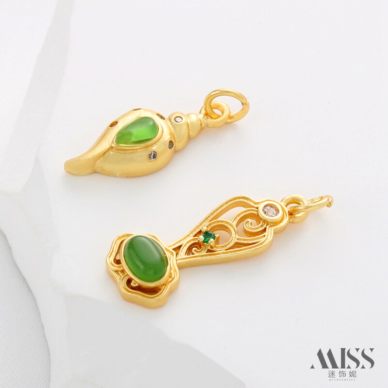 18K包金保色古法金哑金碧玉如意葫芦吊坠diy手工手链项链饰品配件