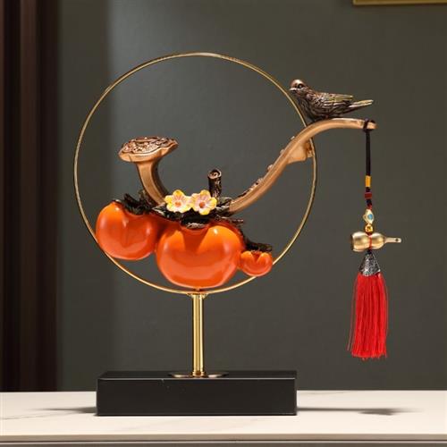 天台悦先新中式事事如意柿子摆件玄关电视柜家居装饰乔迁之喜布置
