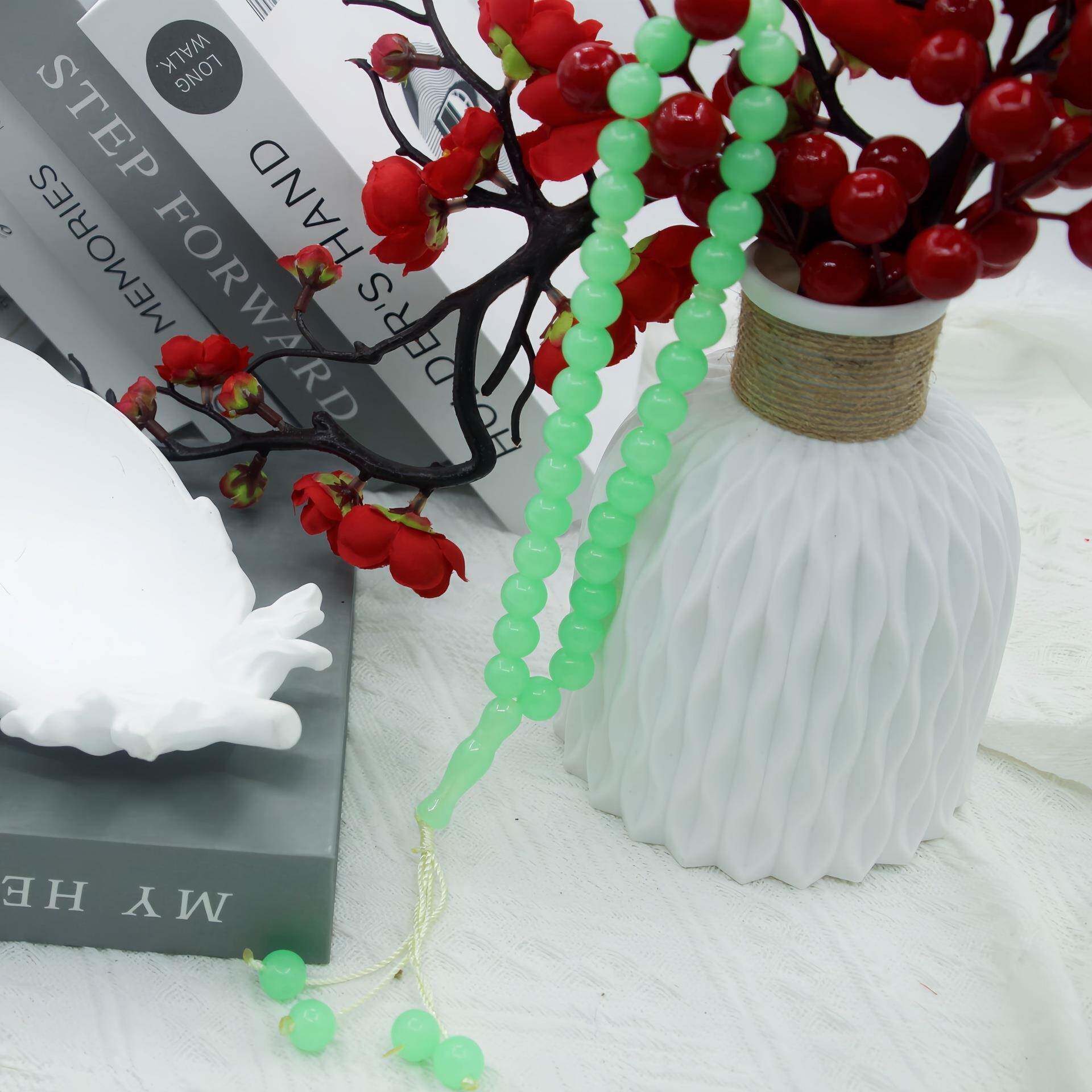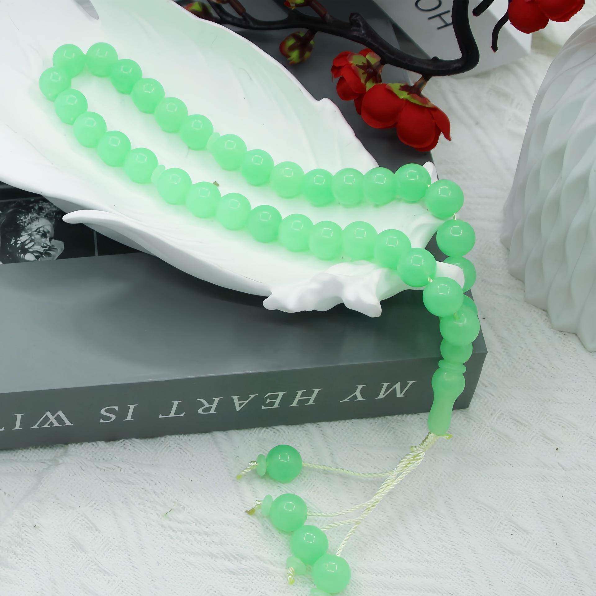 抖音爆款男女99颗8mm夜光石冰种浅绿色念珠佛珠手串饰品厂家直供