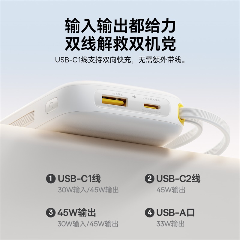 【3c认证】倍思20000毫安充电宝2025新款快充超薄小巧便携自带线大容量移动电源便携适用小米苹果17专用正品