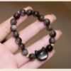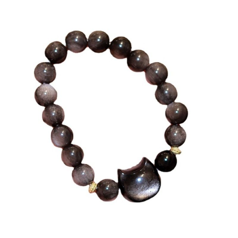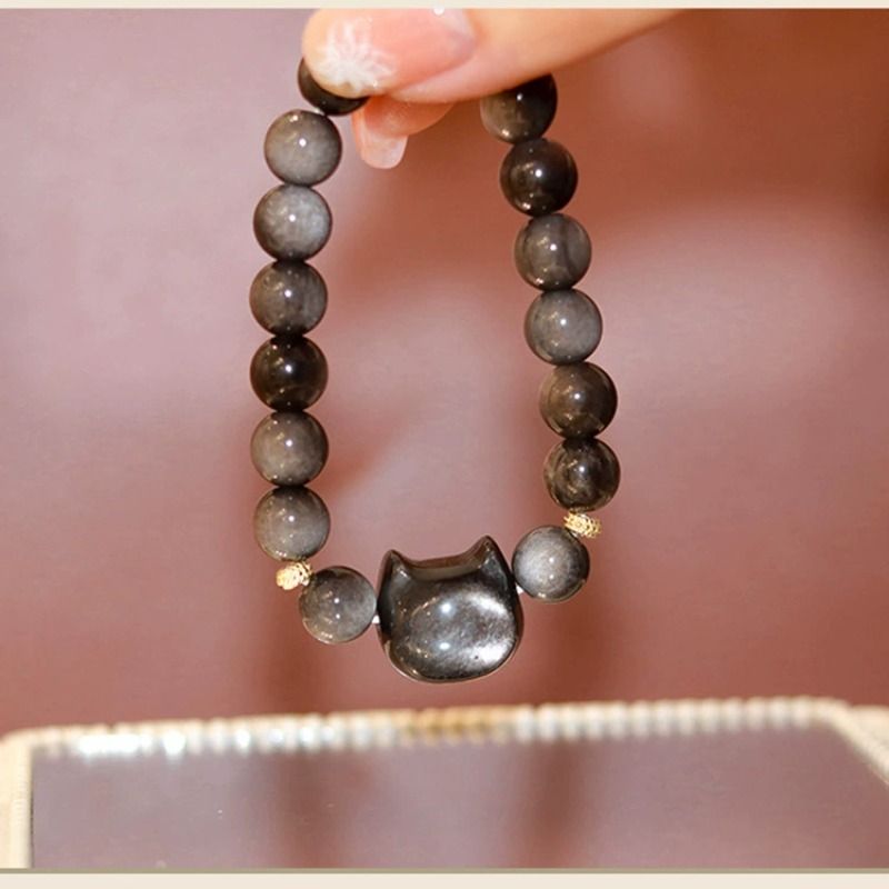 黑夜精灵原创天然猫咪头银曜石手链手串情侣男女个性甜酷风