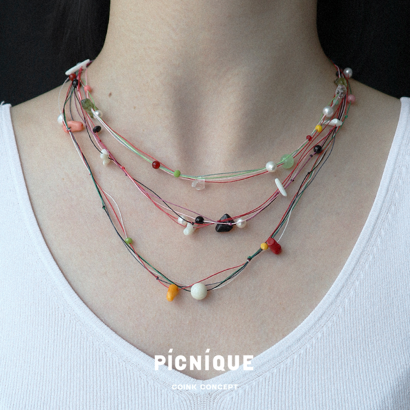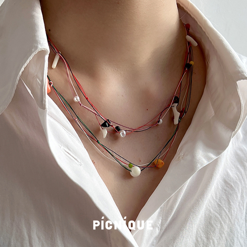 PICNIQUE 彩绳串珠项链手链 925纯银原创小众设计复古手工锁骨链