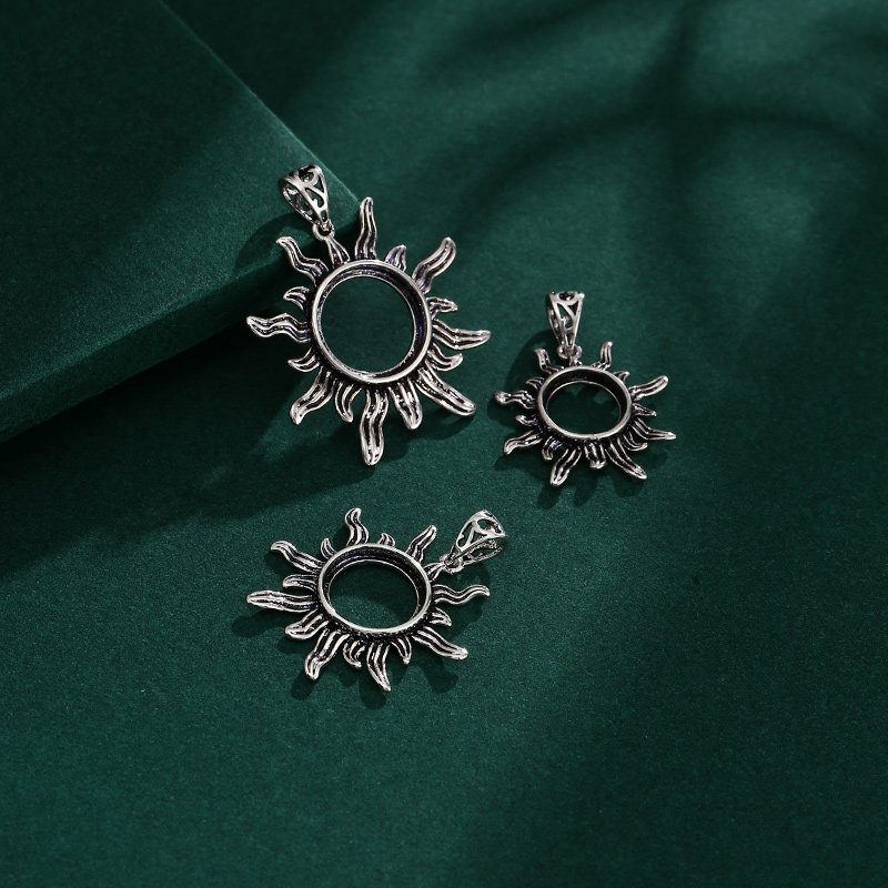 复古简约吊坠空托太阳花男女镶嵌翡翠蜜蜡圆形吊坠扣头配件8-15mm