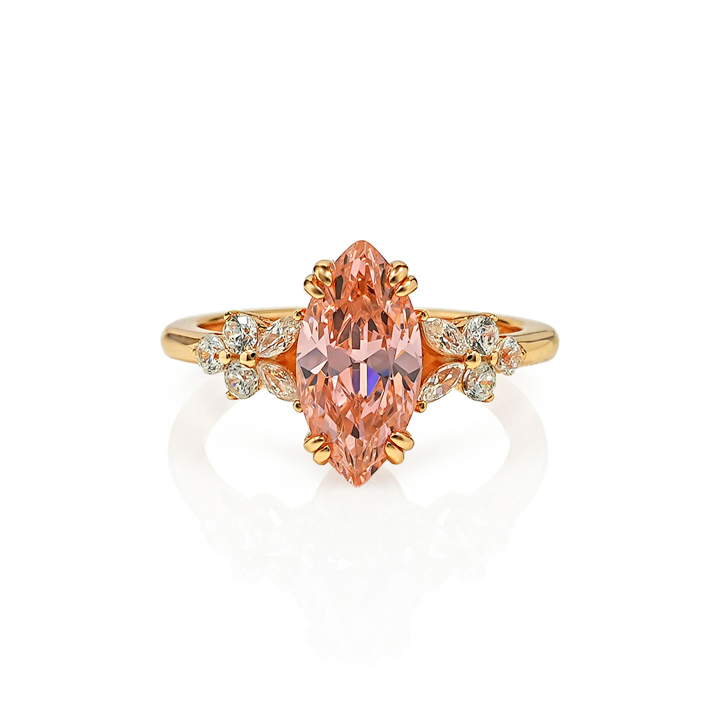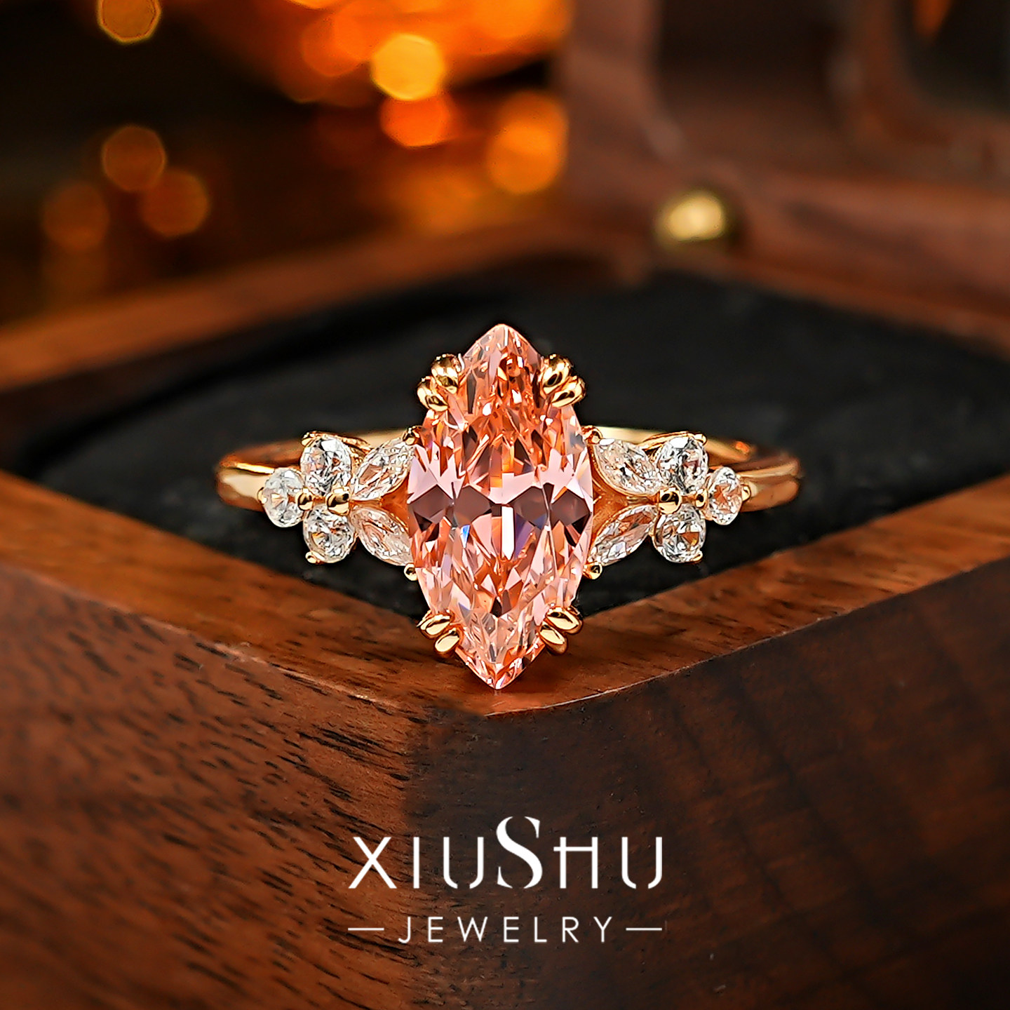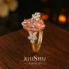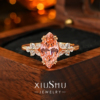 2ct《柔焰轻羽》帕帕拉恰粉橙色冰花切割马眼钻戒指女小众不撞款