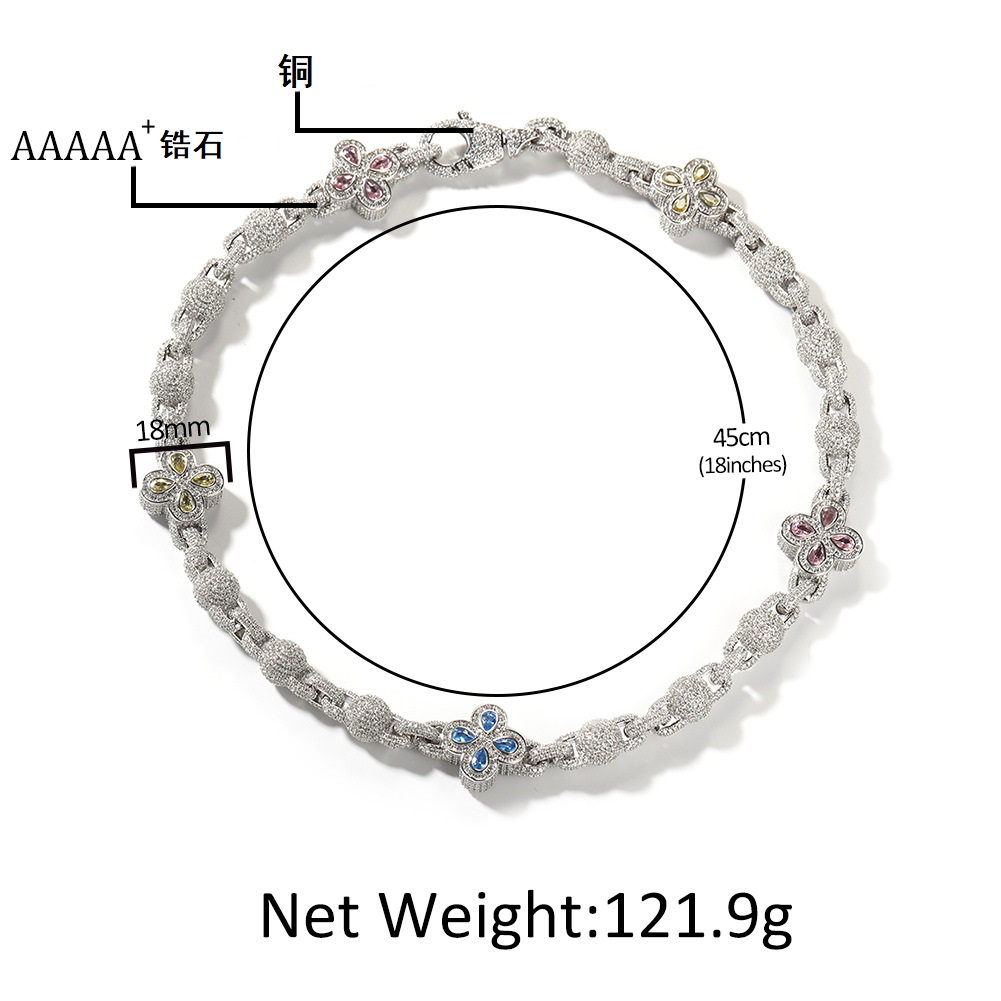 时尚新款四叶草圆珠链男士项链个性高铜镶锆石女士饰品嘻哈手链