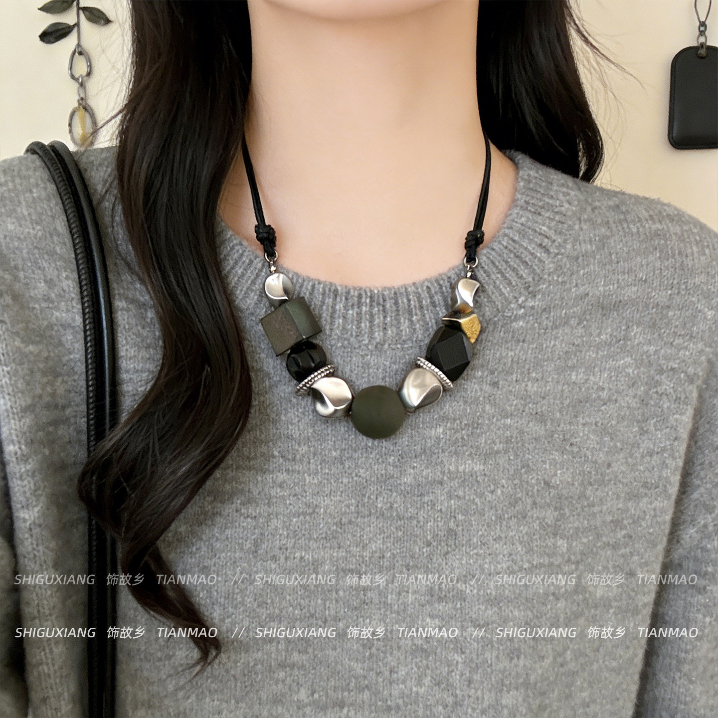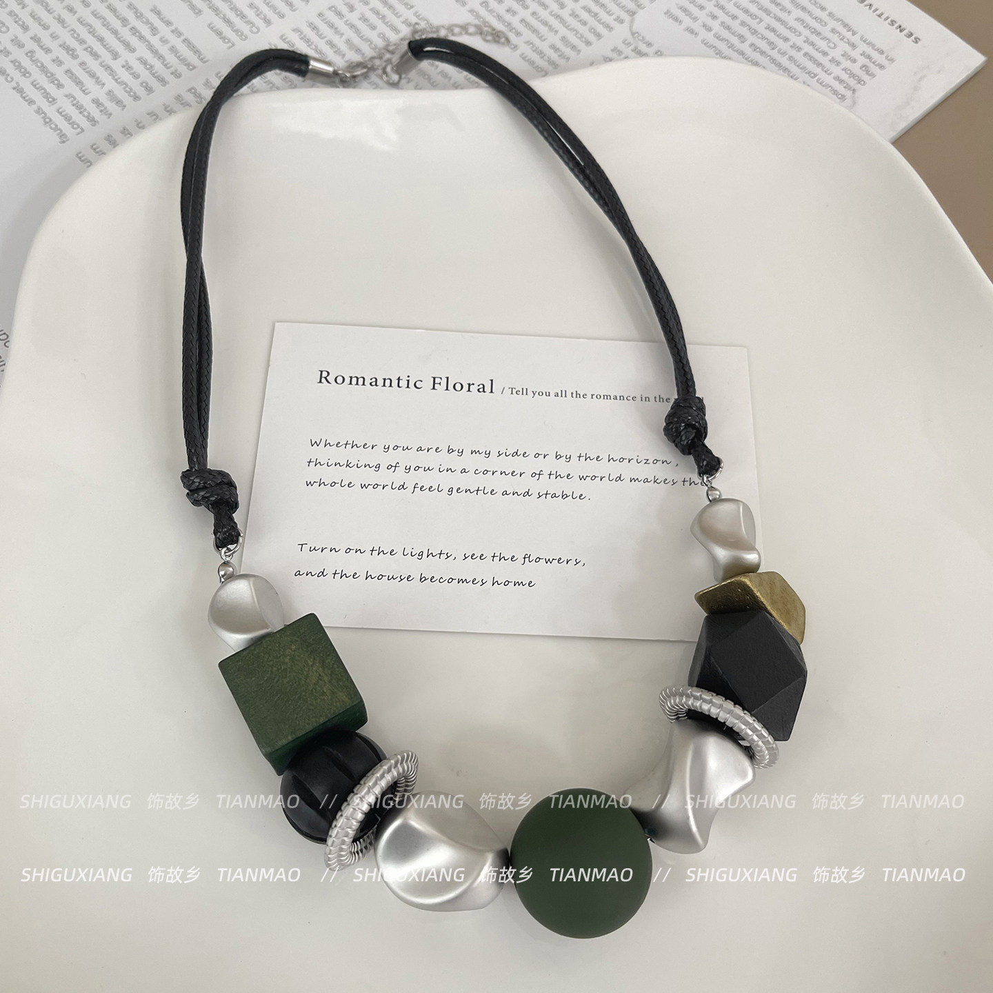 2026新款项链女高级感轻奢小众木质吊坠毛衣链大衣高档配饰锁骨链