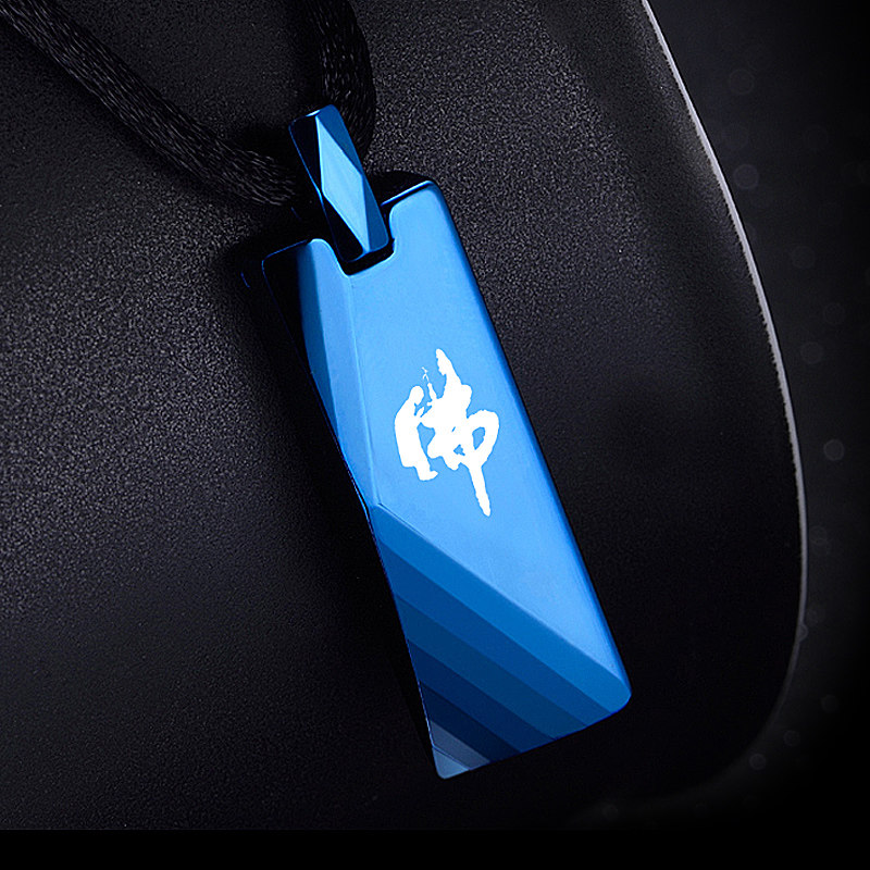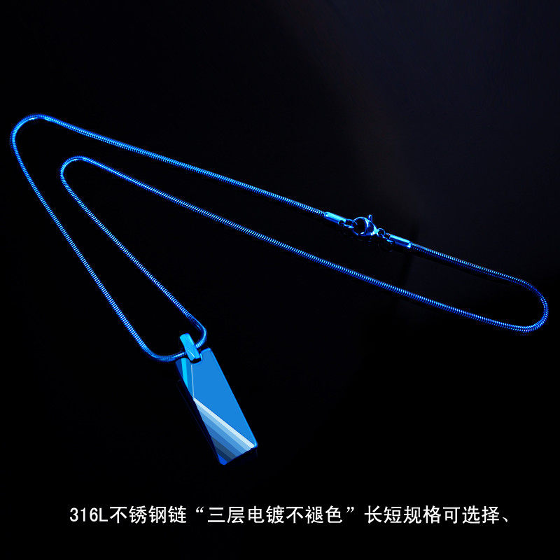 个性蓝色钨金项链男士吊坠简约霸气饰品刻字挂坠礼物钛钢日韩潮牌