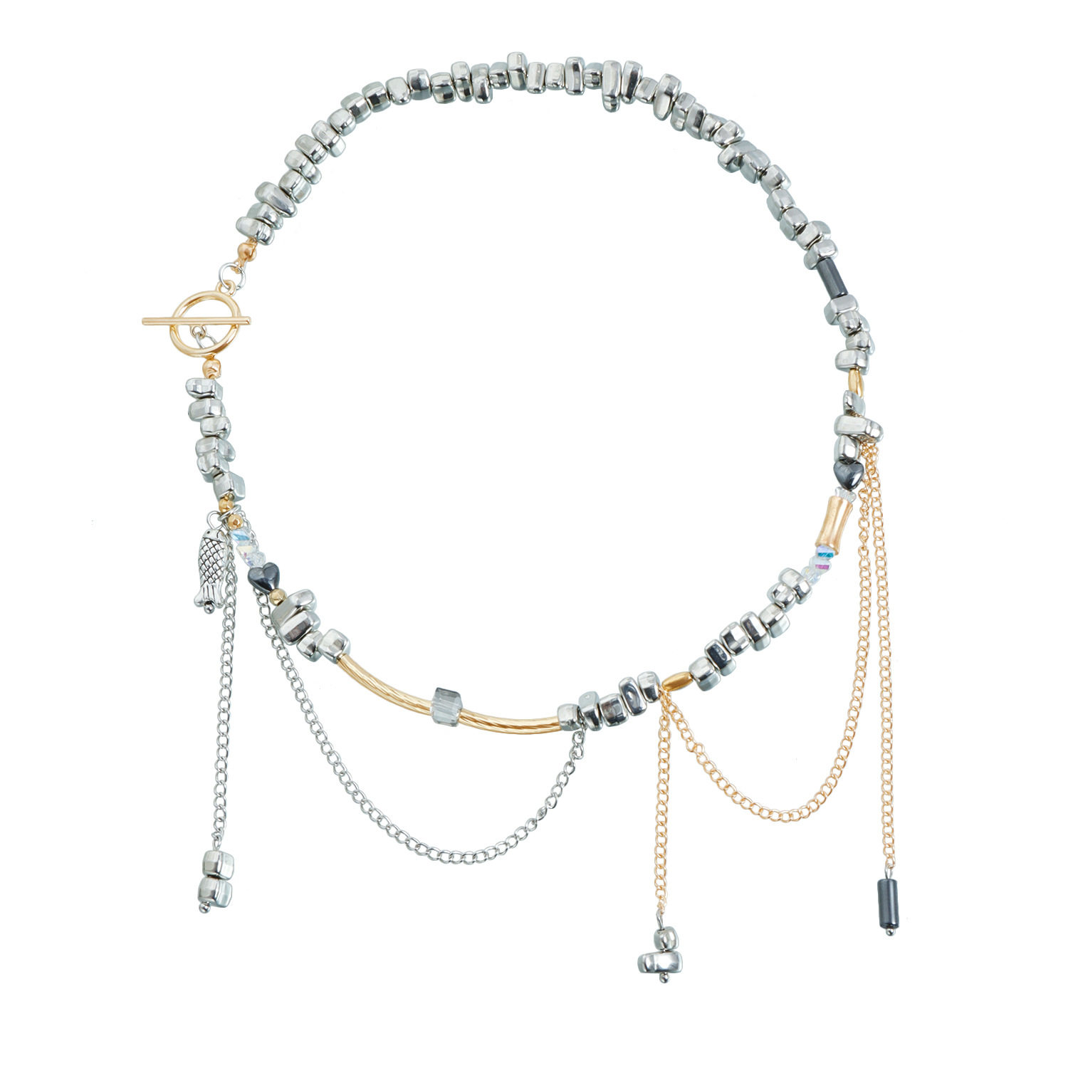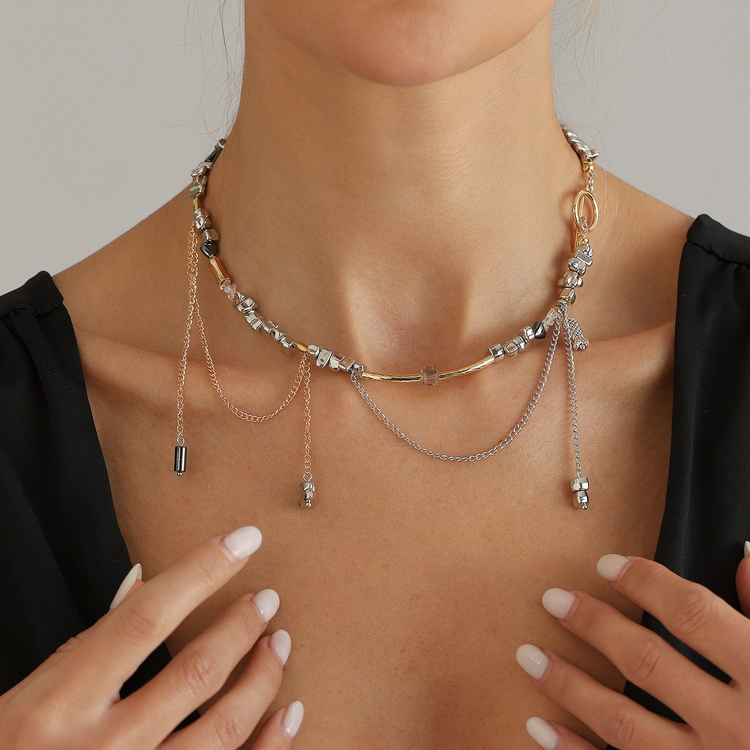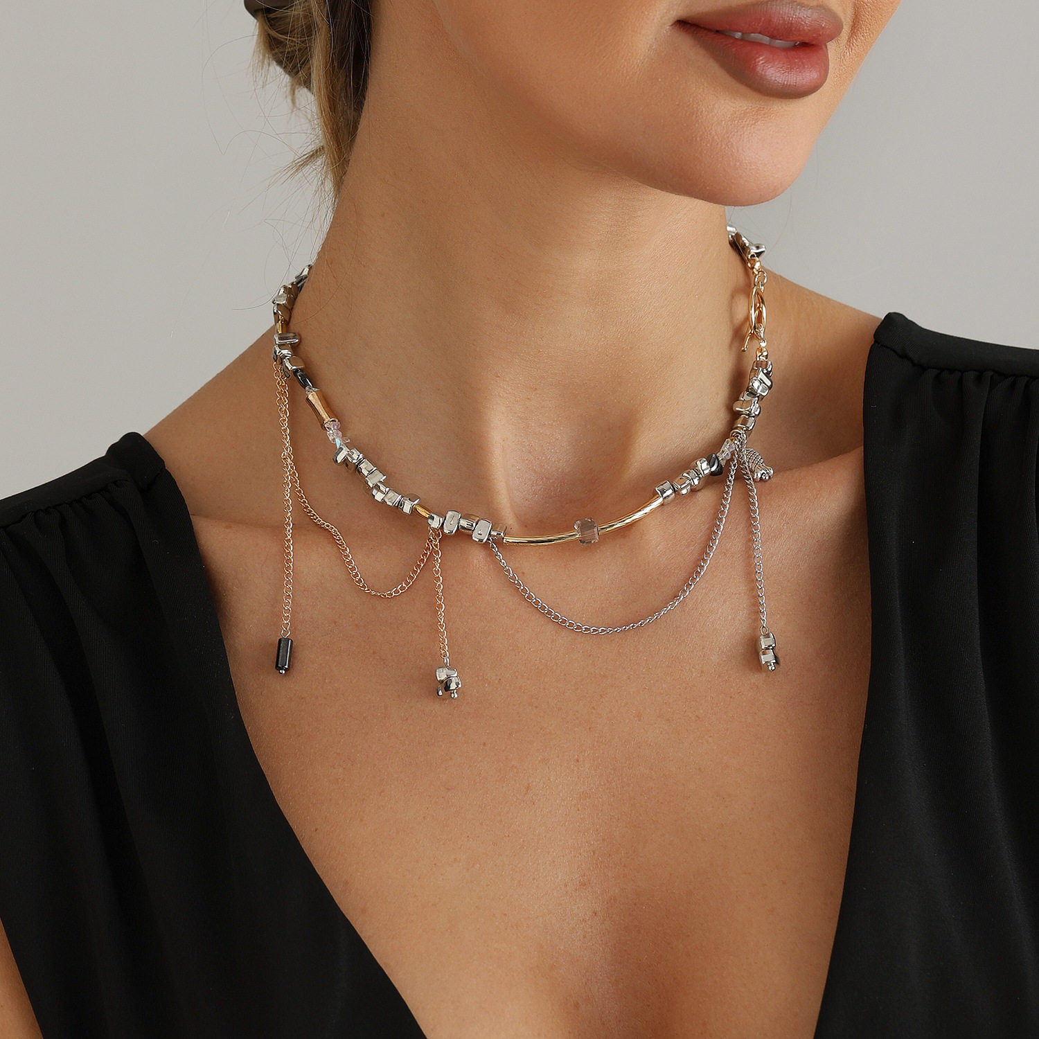 欧美跨境饰品双拼色碎银项链女 ins风甜酷流苏锁骨链时尚派对配饰