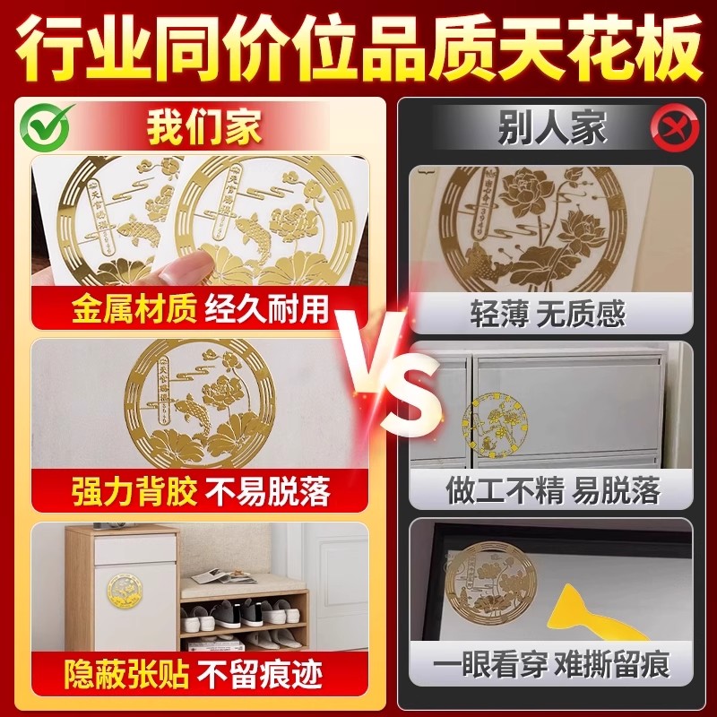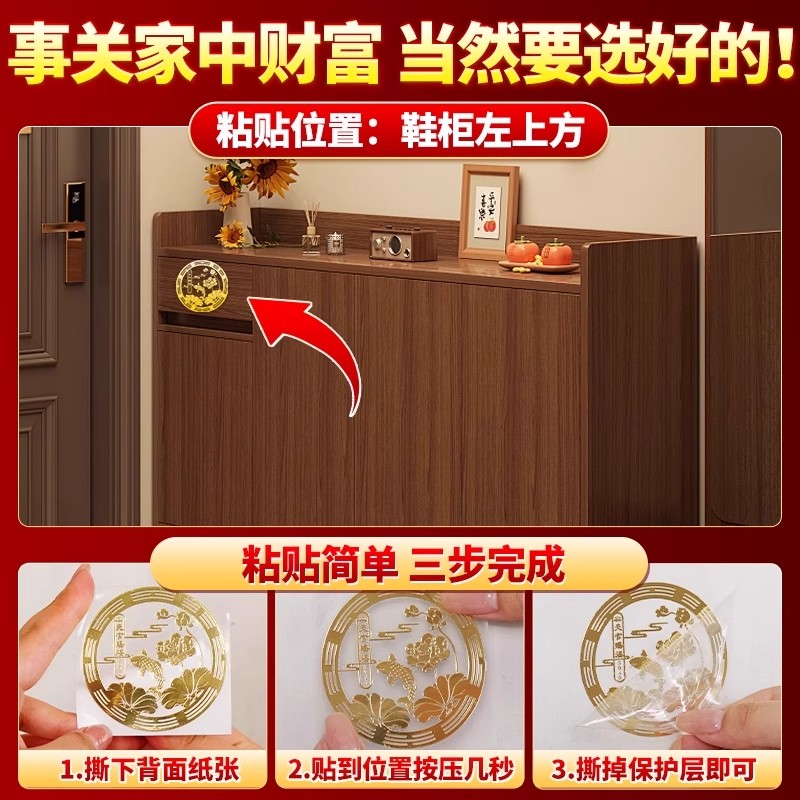 荷花鲤鱼净秽图卫生间莲花贴纸好运连连厕所荷花锦鲤金属贴画鞋柜