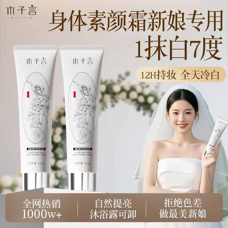 新娘素颜霜美白全身自然提亮不假白拒绝色差抗氧持妆结婚宴会身体