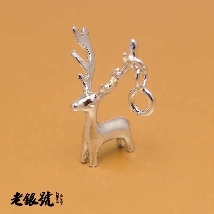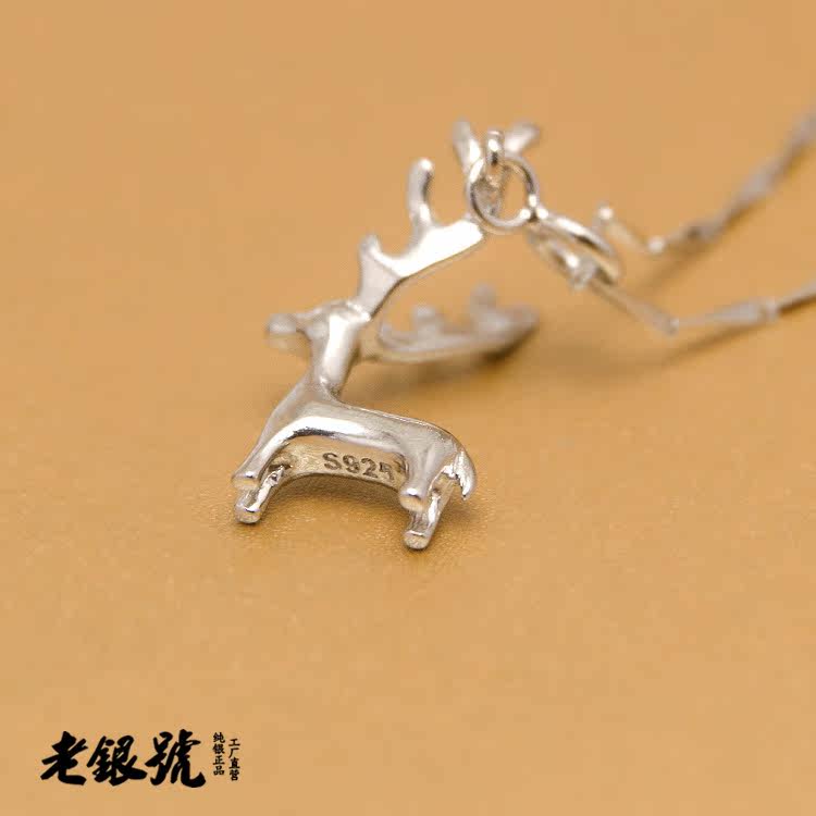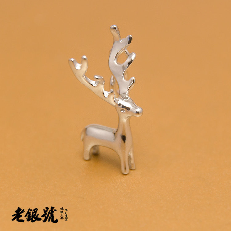 S925纯银3D立体小鹿麋鹿驯鹿项链手链吊坠挂饰工厂批代发S11C