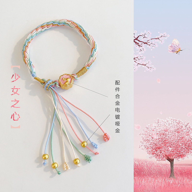 端午节五彩绳 中秋手工串金珠的编织绳手绳diy手链成品自编材料包