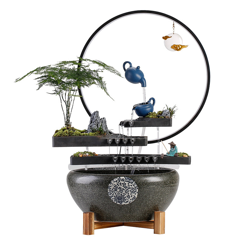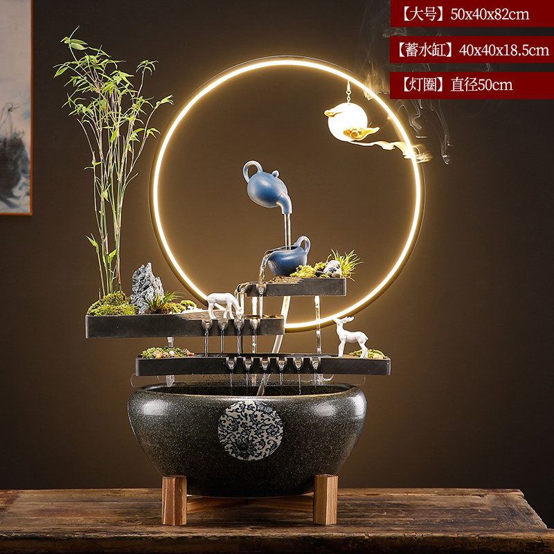创意水循环流水摆件客厅办公室玄关招财鱼缸造景乔迁新居开业礼品