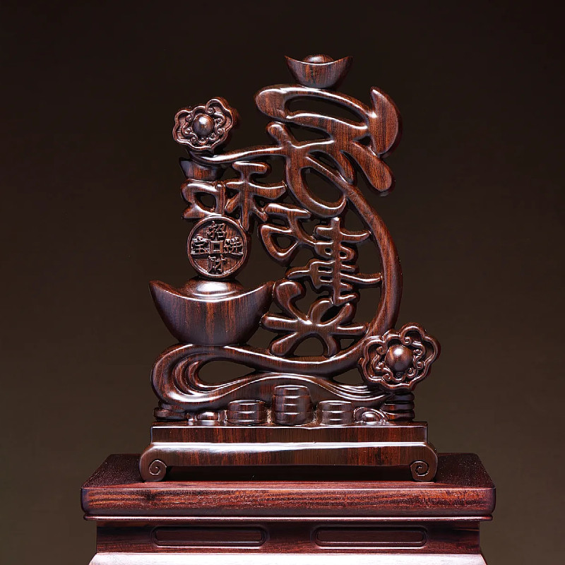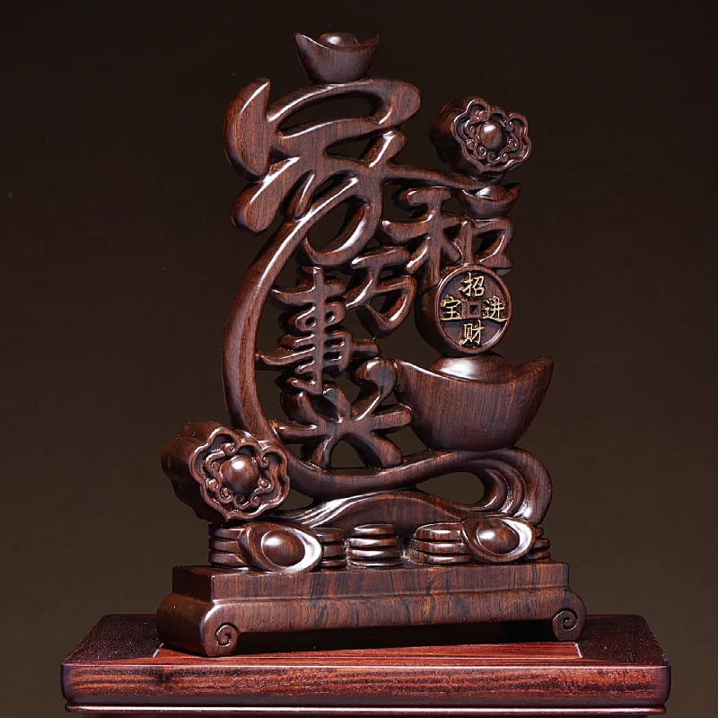 黑檀木雕家和万事兴摆件实木新中式客厅玄关装饰品高级感家居好物