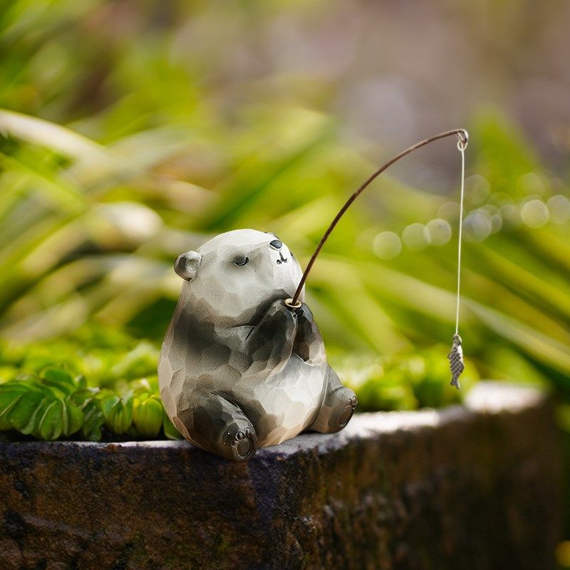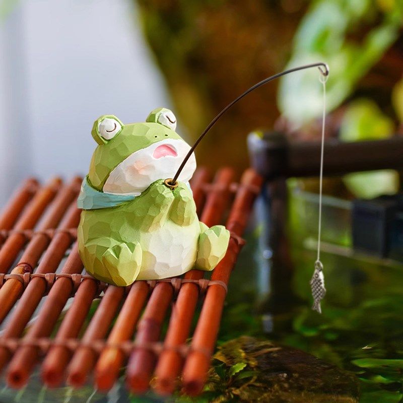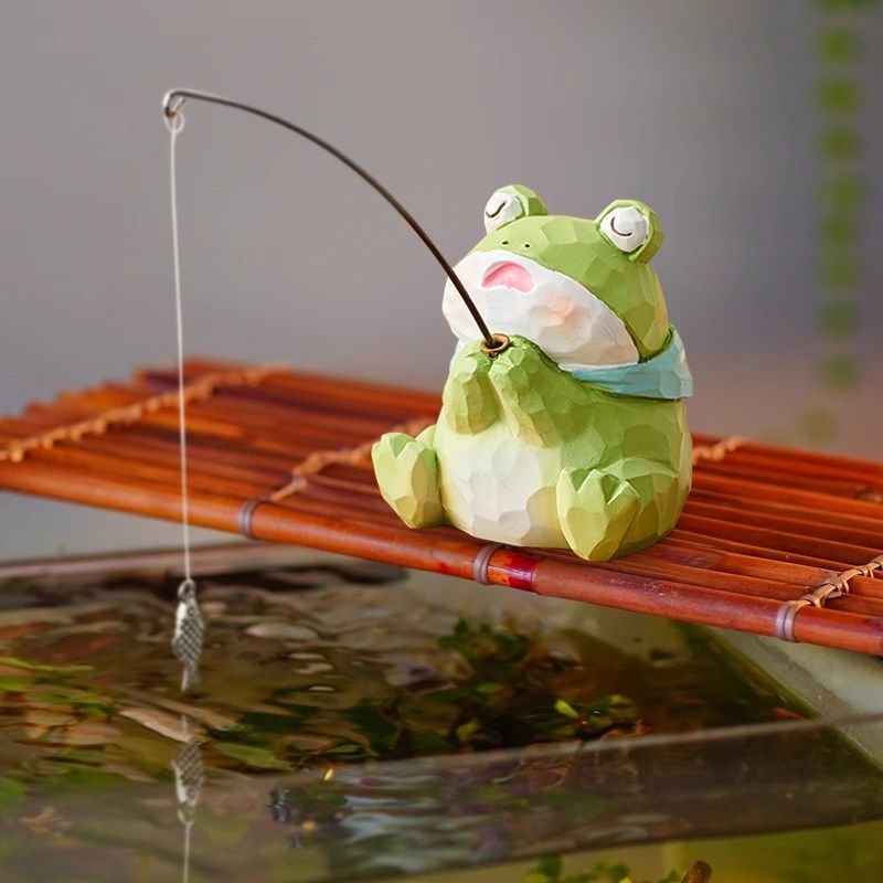 创意小青蛙猫咪钓鱼摆件庭院鱼缸造景边缘装饰品可爱治愈系小物件