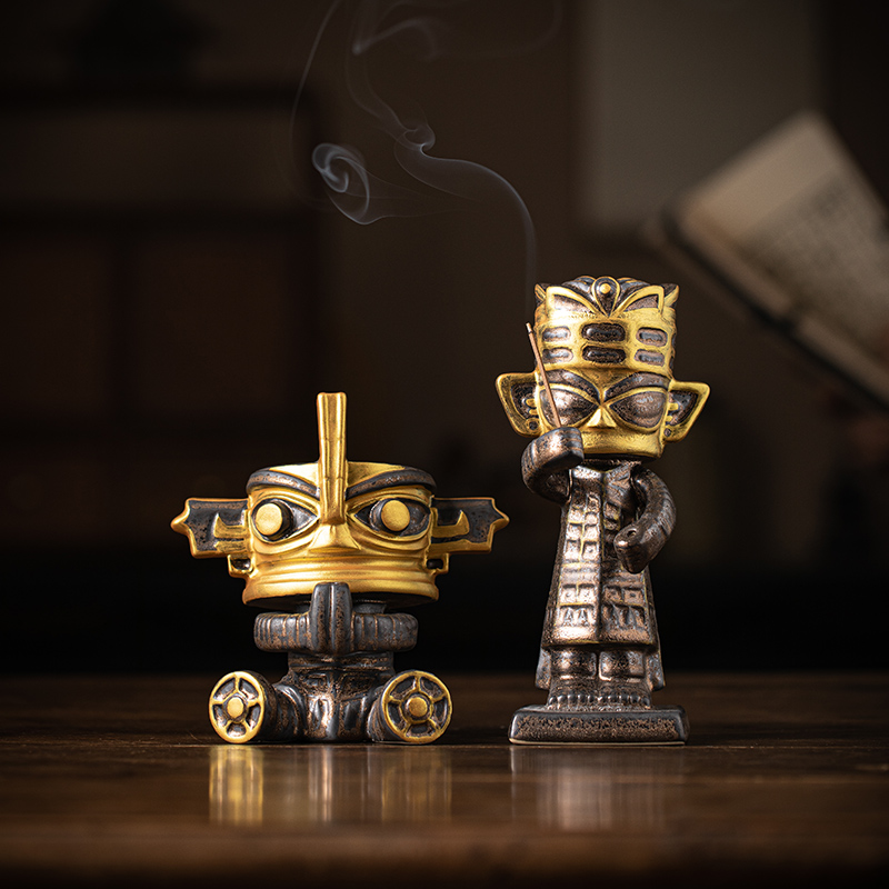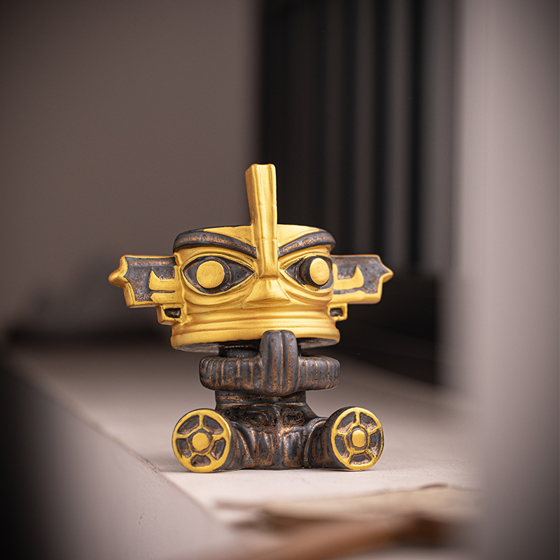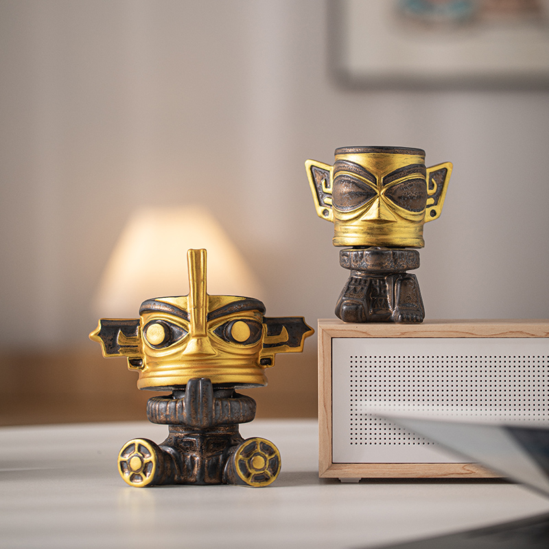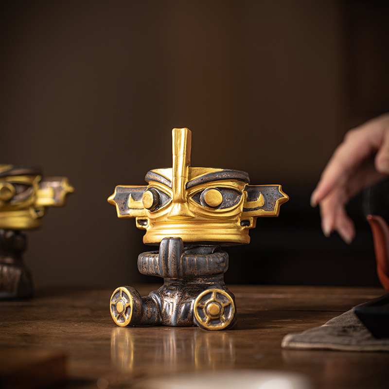 国潮文创陶瓷三星堆纵目立人金面摆件家居客厅茶室空间桌面装饰品
