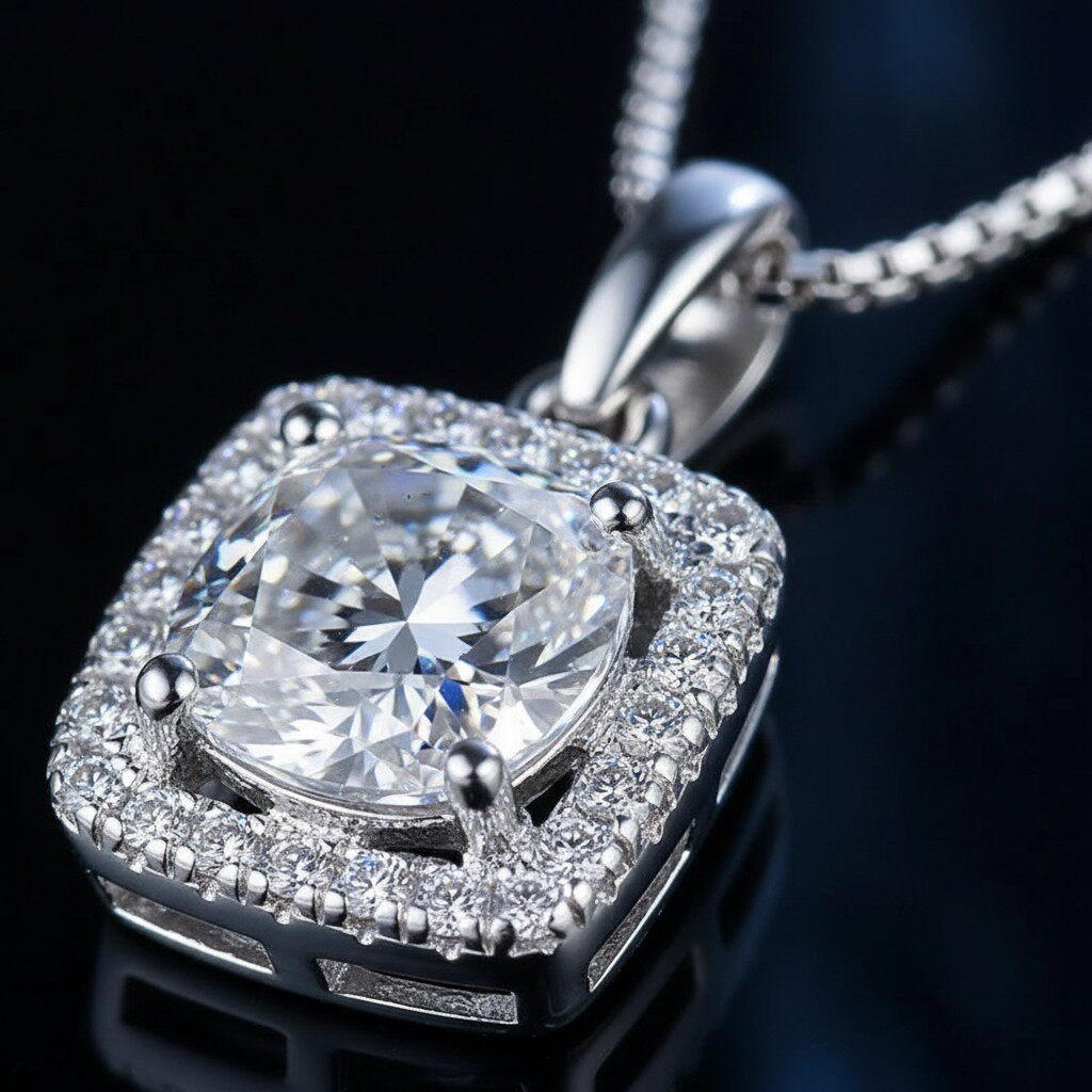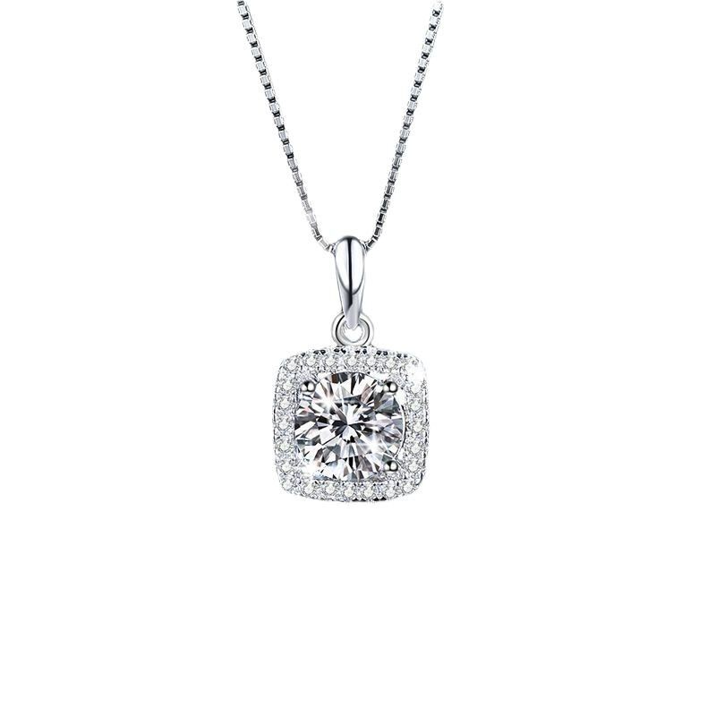 进口莫桑石项链女1克拉D色仿真钻石吊坠纯银pt950材质不掉色方糖