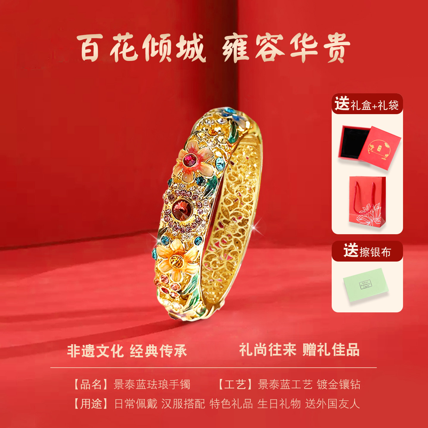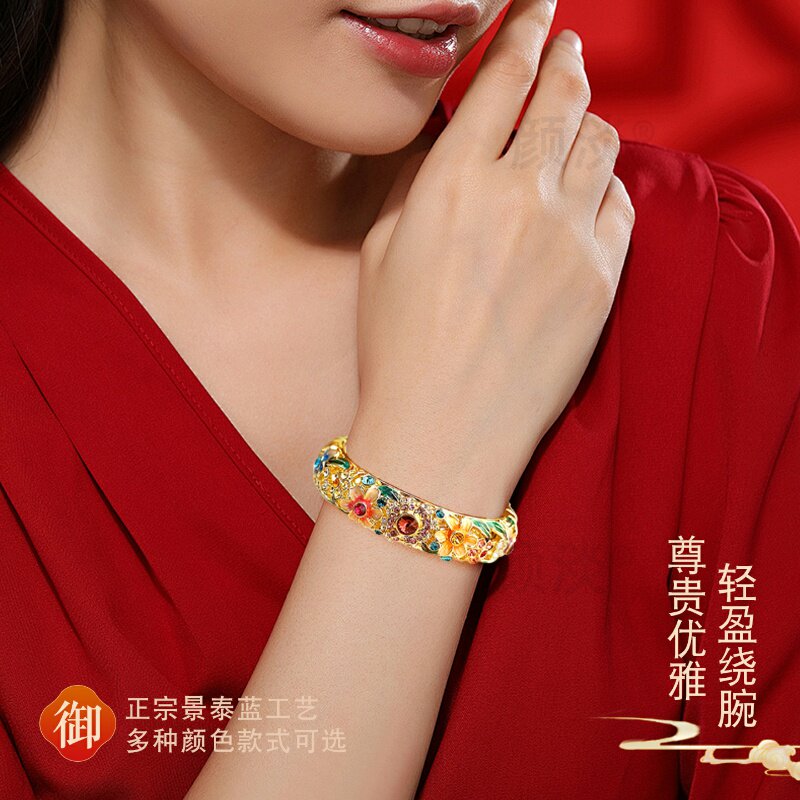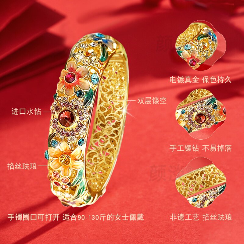颜淡新款景泰蓝手镯百花倾城掐丝珐琅镶钻镯子故宫非遗送女友饰品