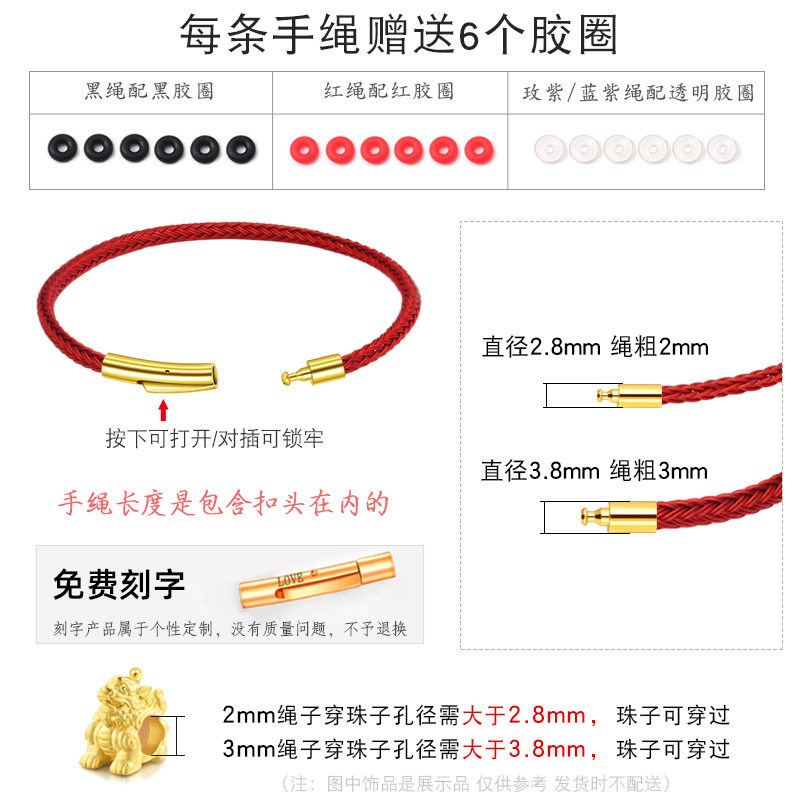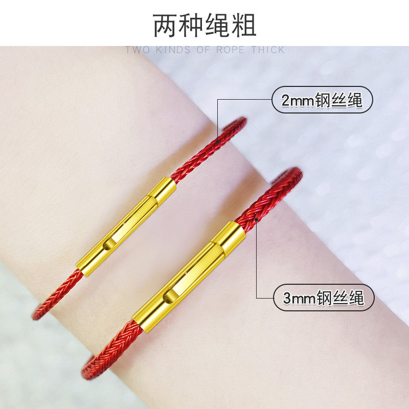 手绳手链本命年红绳可穿转运珠替换皮绳diy串珠红色钢丝绳手链绳