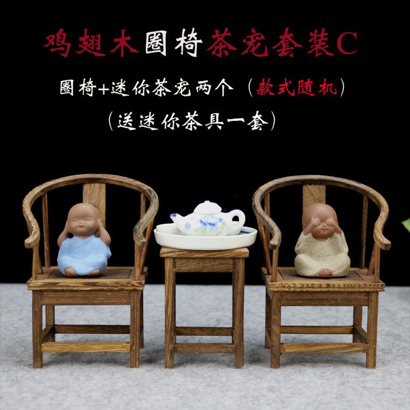 ri0t实木雕木质工艺礼品中式仿古微型迷你家具客厅装饰小屏风桌椅