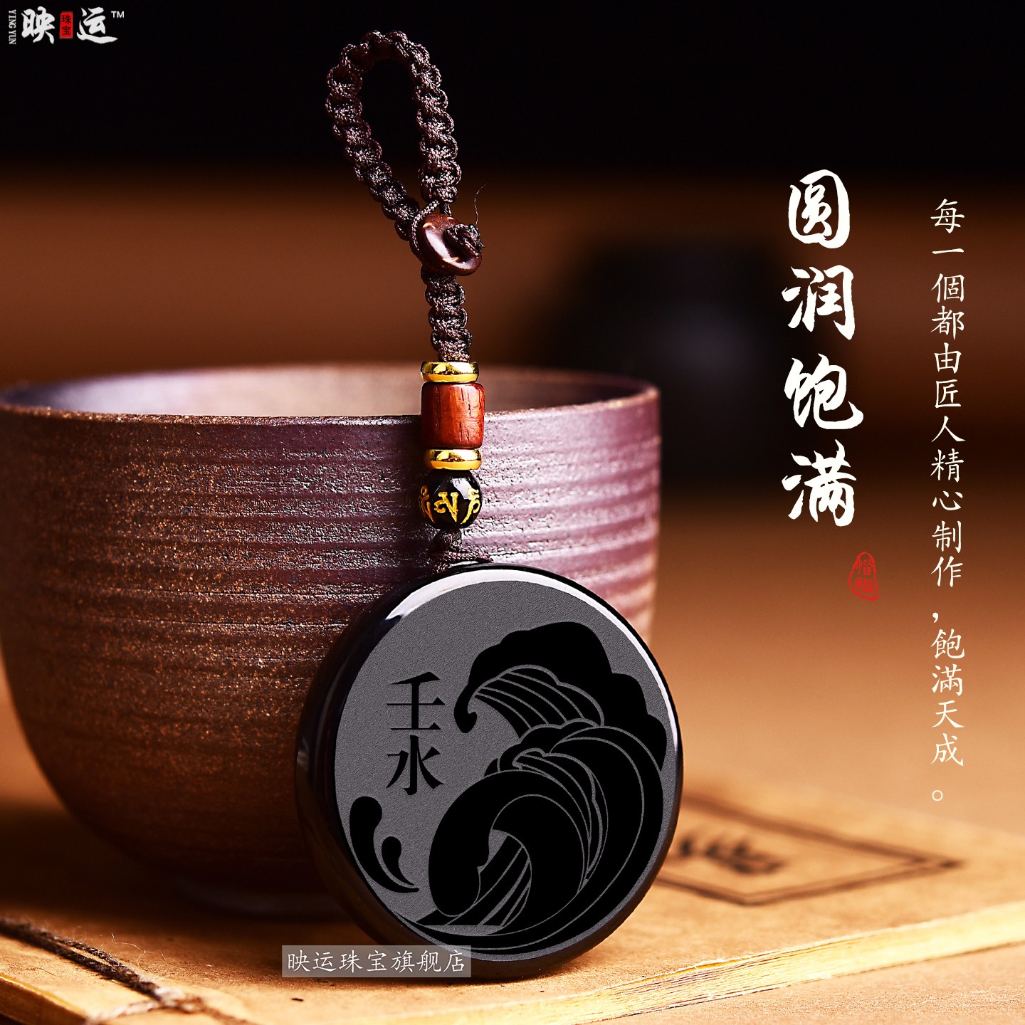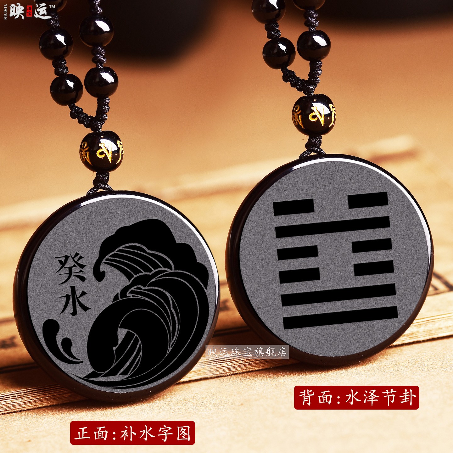 天然黑曜石五行属水吊坠缺水补水无事牌水泽节卦壬水癸水项链挂件